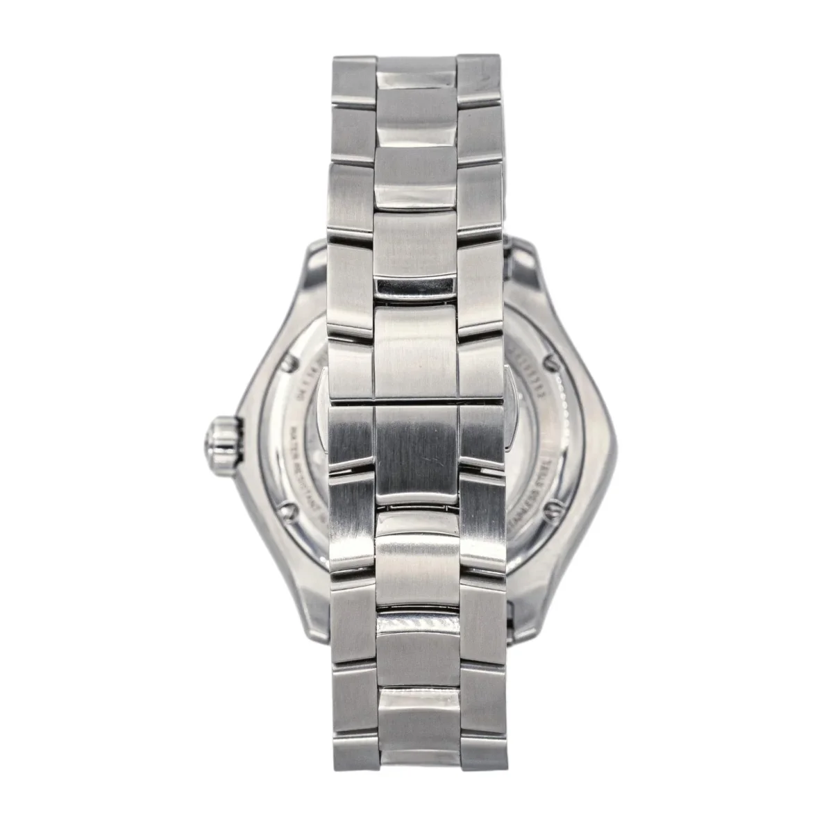 Montre Ebel modèle Discovery 1216458 en acier, n°série 24195353, cadran bleu à chiffres arabes, mouvement mécanique à remontage automatique, boîtier 41 mm, verre saphir, bracelet en acier boucle papillon (taille poignet 18,00 cm, largeur bracelet 1,96 à 1,79 cm en chute), poids total : 147,06 g, full set (boite et papier d’origine), année 2015, révision […]