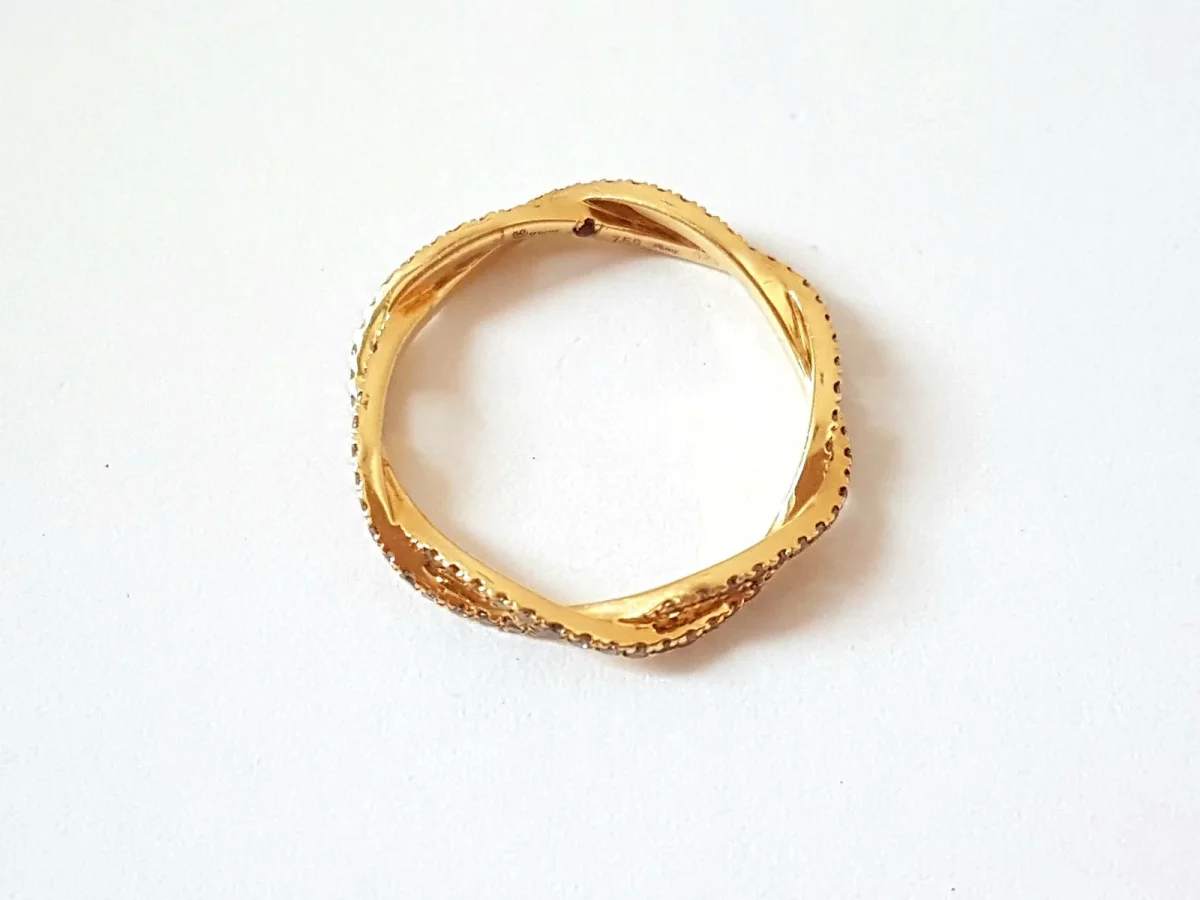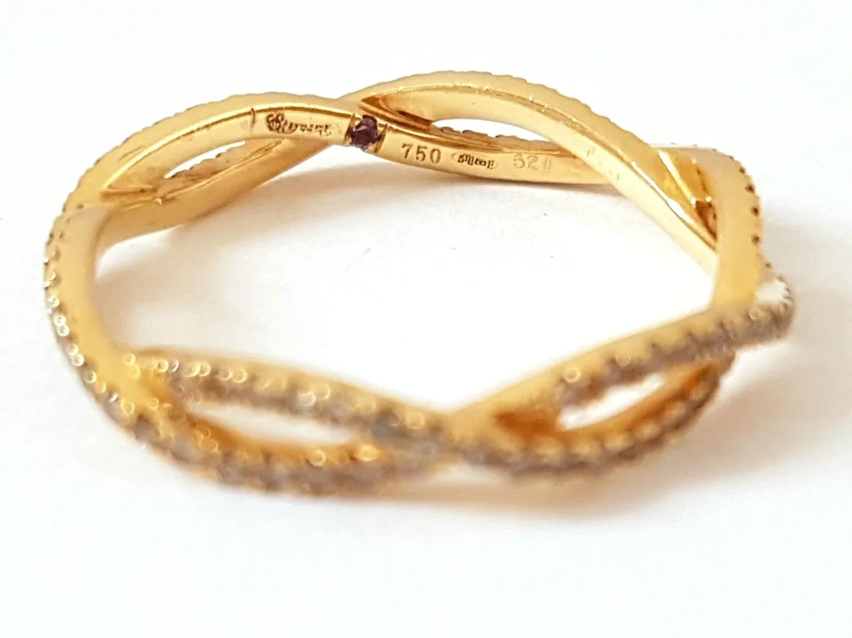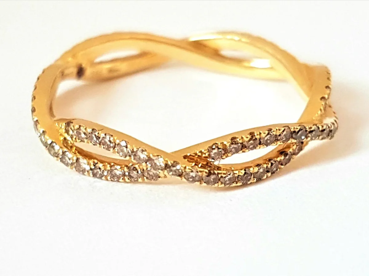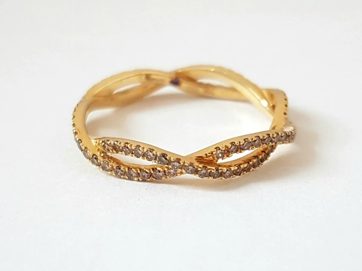 Bague signée de la maison Eternamé, Collection entrelacs, en Or jaune 750 millièmes (18 carats) et diamants bruns, taille brillant pour environ 0,49 ct au total, Poids total: 1,76 g, Taille de doigt: 52, Etat neuf