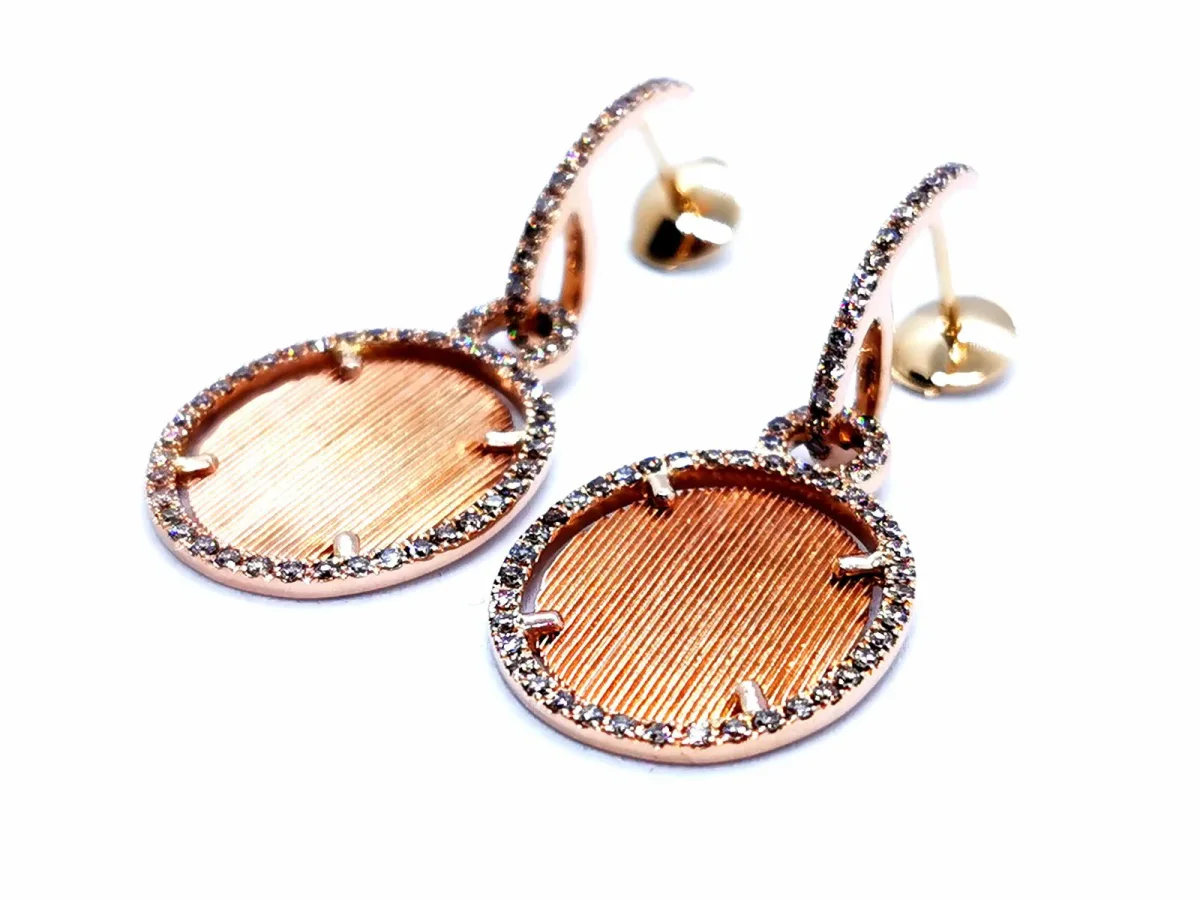 Boucles d’oreilles signées de la maison Eternamé, collection Lunaria, Or rose 750 millièmes (18 carats), Diamants brun pour un total excat de 0.84 ct, chaque diamant pèse 0,007 ct, Taille: 3.7 cm x 1.6 cm, Poids total 7,22 g, état neuf, Poinçonné, Prix neuf: 3050€