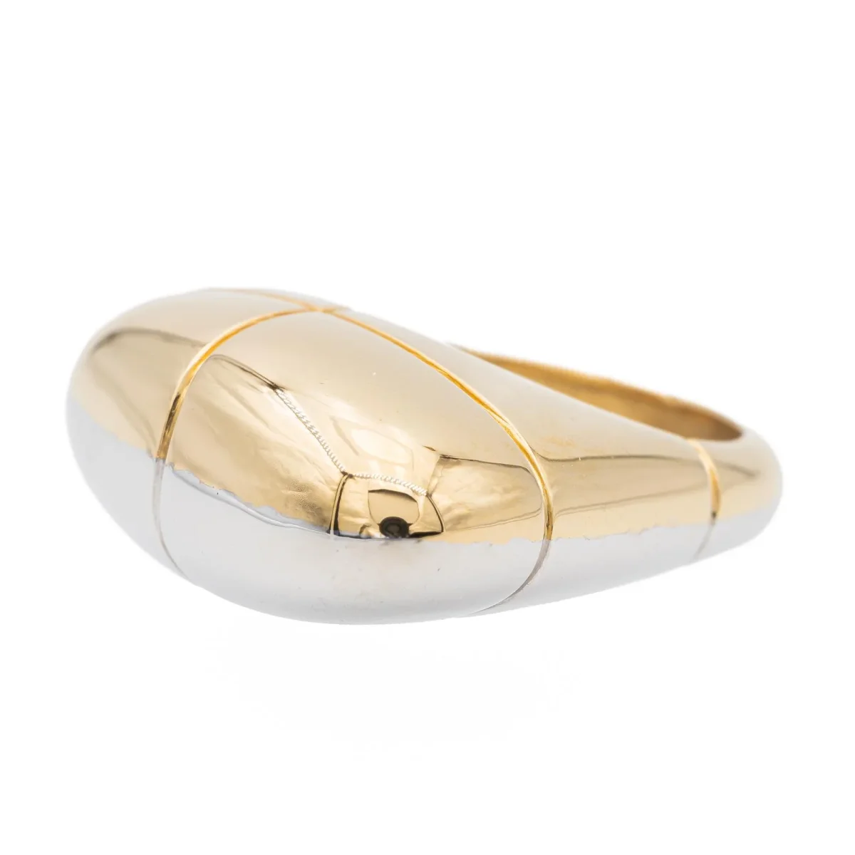 Bague bicolore signée de la Maison Fred, en or blanc et or jaune 750 millièmes (18 carats), largeur sur le dessus: 2,22 cm, tour de doigt: 48, poids total: 10,40 g, numérotée: JIF80015, poinçon tête d’aigle, excellent état