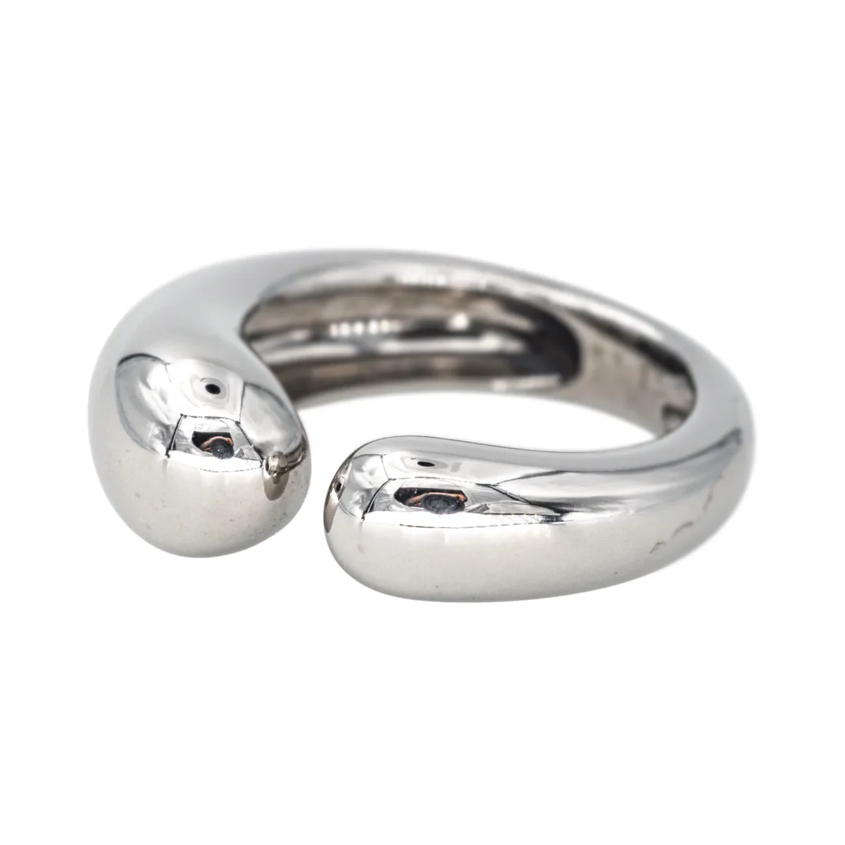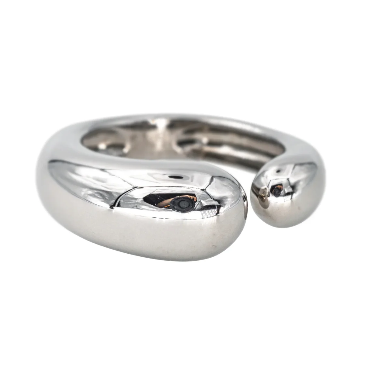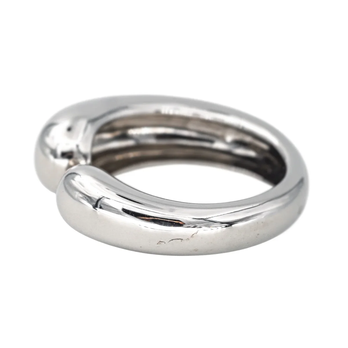 Bague jonc signée de la Maison Fred en or blanc 750 millièmes (18 carats), largeur sur le dessus : 0,80 cm, tour de doigt : 52, poids total : 8,49 g, poinçon tête d’aigle, numérotée : M02026, excellent état