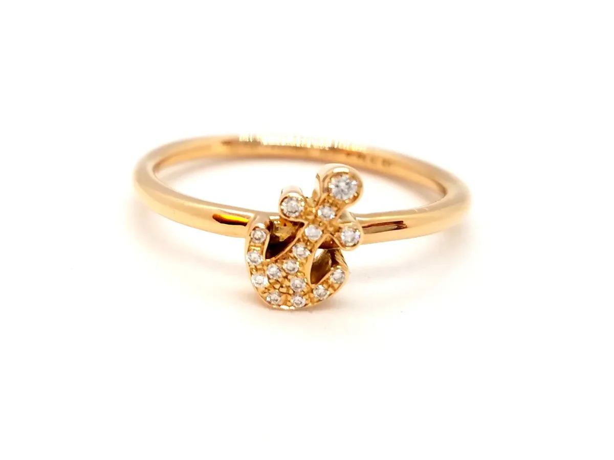 Bague signée de la maison Fred, collection « Kate Moss for Fred », en or rose 750 millièmes (18 carats), modèle ancre sertie de 16 diamants taille brillant G-VS pour un total de 0,06 ct, taille: 53, largeur anneau: 0,15 cm, dimensions ancre: 0,84 cm x 0,55 cm, poids total: 2,50 g, numéroté: 887383, excellent état, prix neuf: 890€