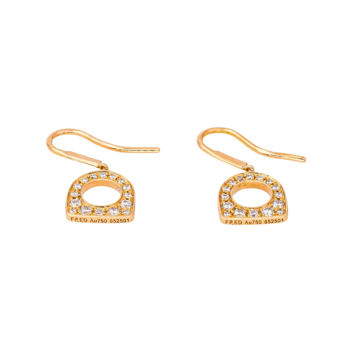 Paire de boucles d’oreilles dormeuses, signée de la Maison Fred en or rose 750 millièmes (18 carats) testé, modèle Success, pavées de diamants, taille brillant, environ G-VS, d’un poids total d’environ 0,70 ct, dimensions : 1,87 cm x 0,85 cm, poids total : 1,72 g, numérotée : 852501, excellent état