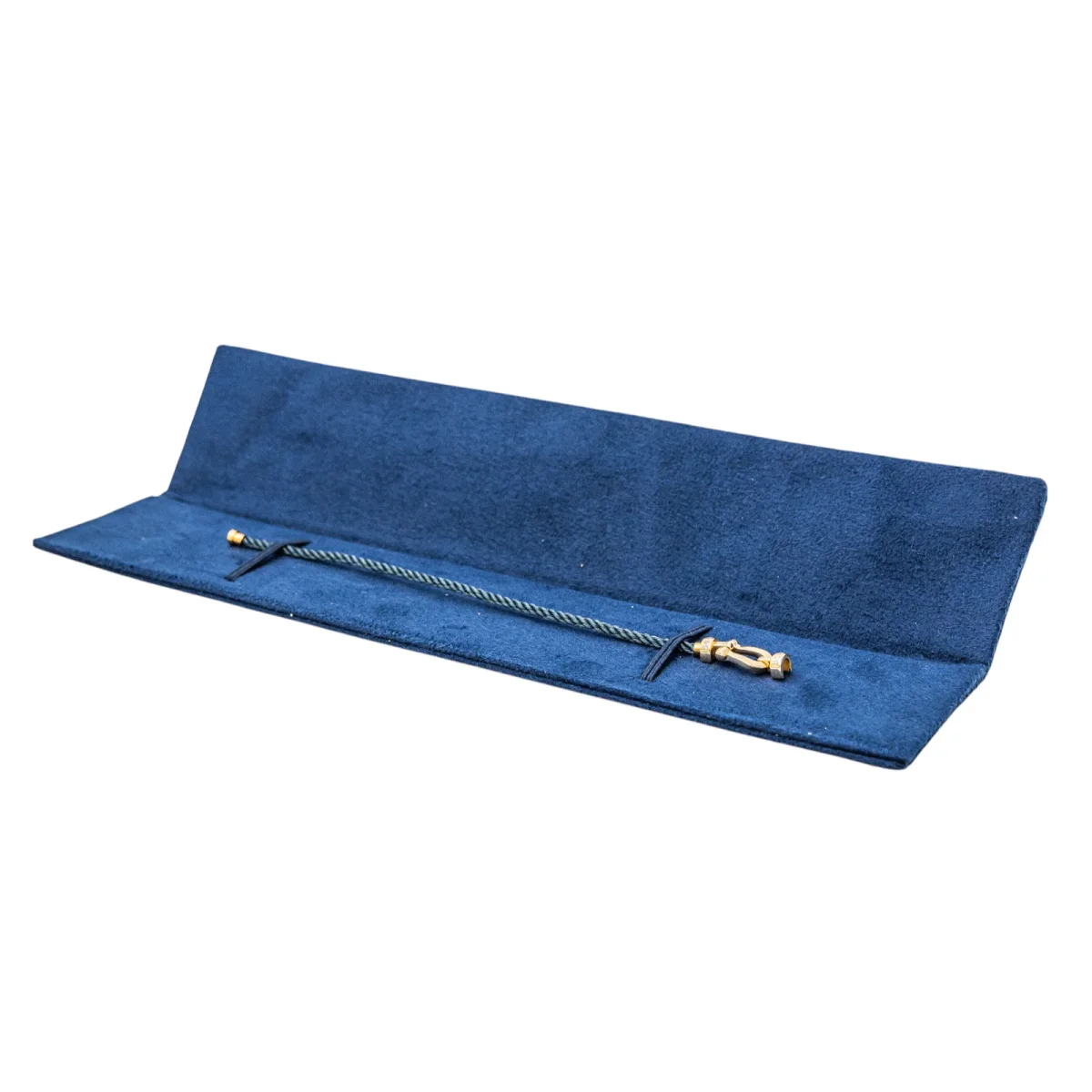 Bracelet signé de la Maison Fred, collection force 10 MM, en or jaune 750 millièmes (18 carats) testé, serti de 14 diamants, taille brillant environ G/VS, pour environ 0,12 ct au total, manille 2 cm x 1 cm, câble gris anthracite, taille 15, poids total : 4,13 g, numéroté: 1057033, livré avec écrin Fred, excellent […]