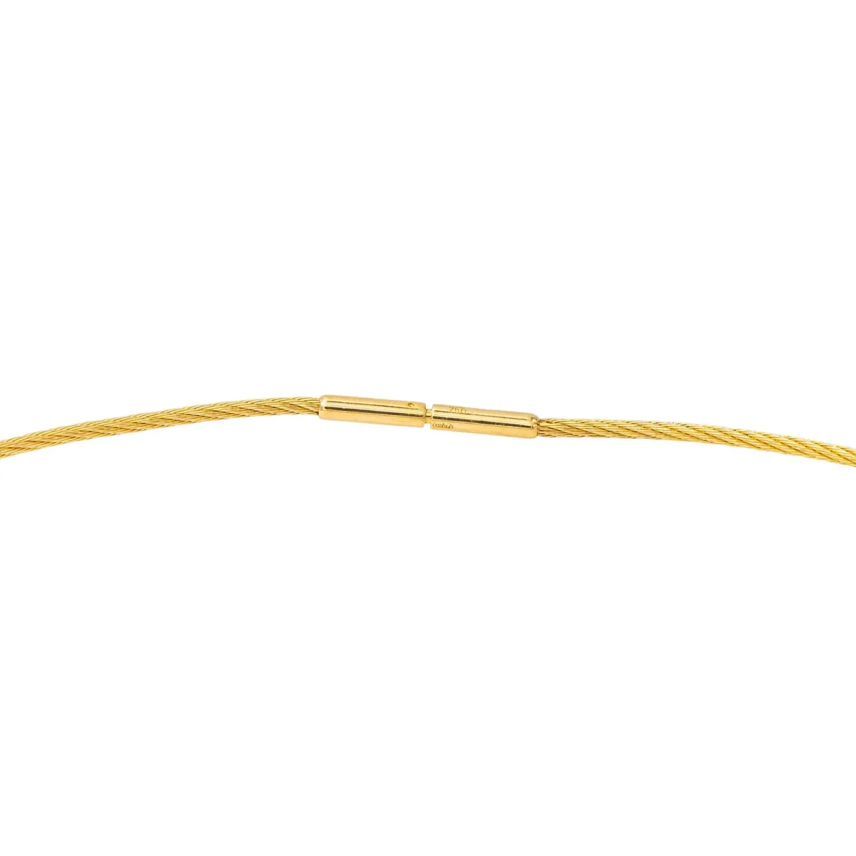 Câble signée de la maison Fred, collection « force 10 », en or jaune 750 millièmes (18 carats), longueur : 42 cm, largeur : 0,125 cm, épaisseur : 0,118 cm, poids total : 6,97 g, poinçon tête d’aigle, excellent état
