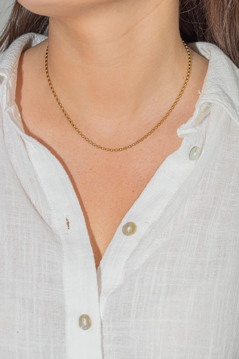 Collier signé de la maison Fred, en or jaune 750 millièmes (18 carats), chaîne maille olive, longueur: 42 cm, largeur: 0,22 cm, dimensions d’un maillon: 0,3 cm x 0,22 cm, poids total: 10,71 g, poinçon hibou, excellent état