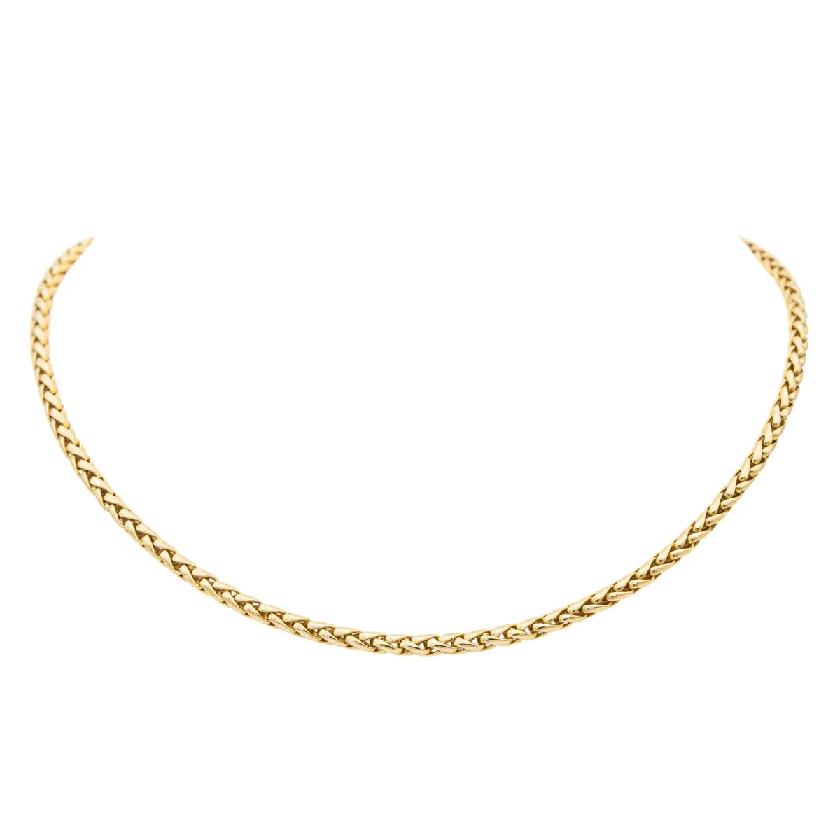 Collier signé de la maison Fred en or jaune 750 millièmes (18 carats), maille palmier , longueur: 41 cm, largeur: 0,28 cm, poids total: 32,2 g, poinçon tête d’aigle, excellent état
