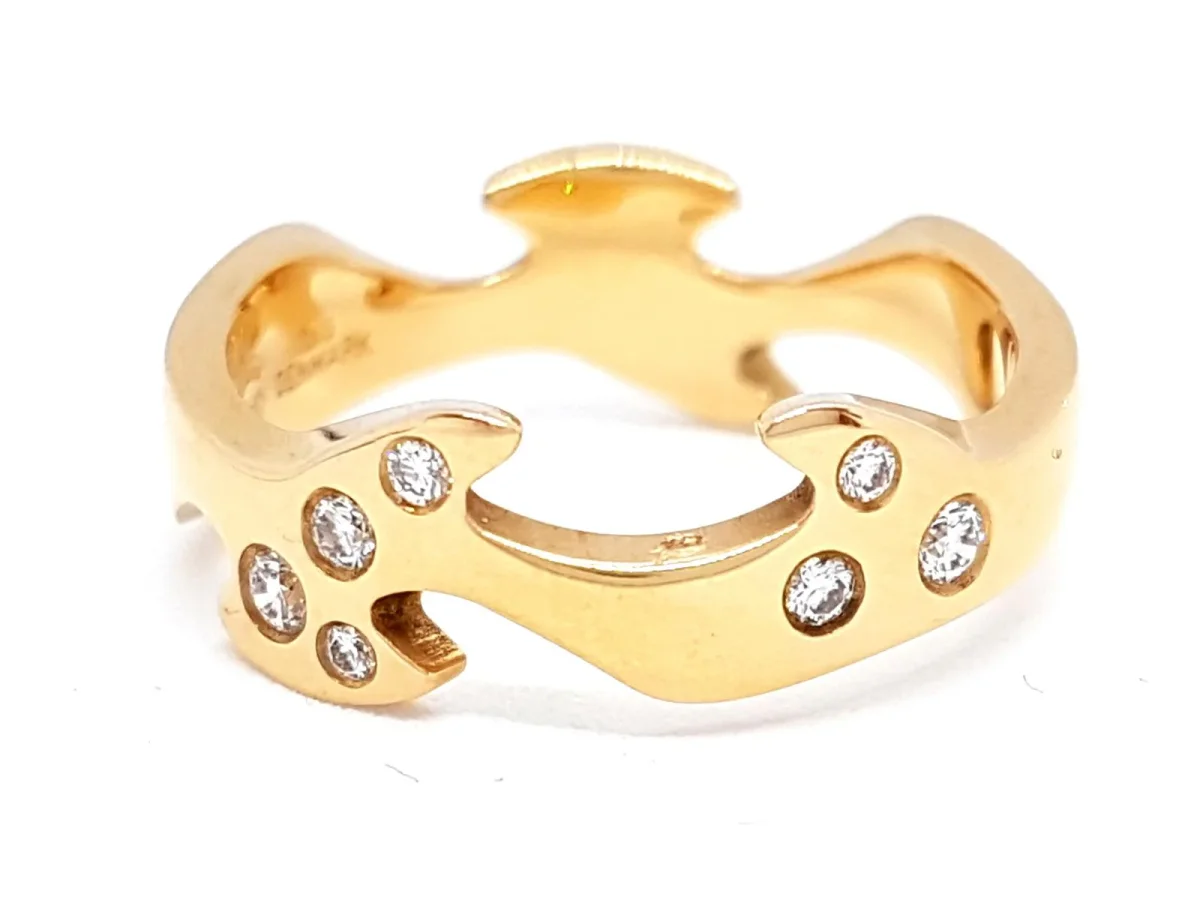 Bague en or jaune 750 millièmes (18 carats), signée de la Maison Georg Jensen, sertie de diamants taille brillant G-H V-SI pour environ 0,12 ct au total, état neuf, Taille du doigt : 54, largeur: 6,4 mm, Poids: 5.41 g, Poinçonnée