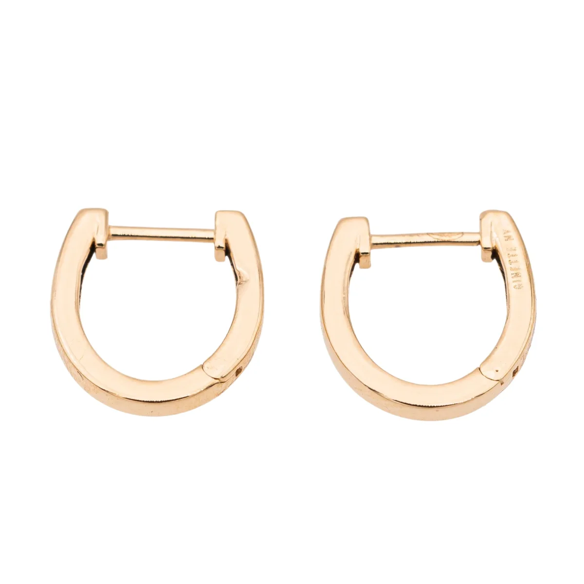 Créoles en or rose 750 millièmes (18 carats) testé, modèle hoop, signé de la Maison Ginette NY, fil carré, dimensions: 1,10 cm x 0,96 cm, largeur: 0,14 cm, poids total: 1,02 g, excellent état