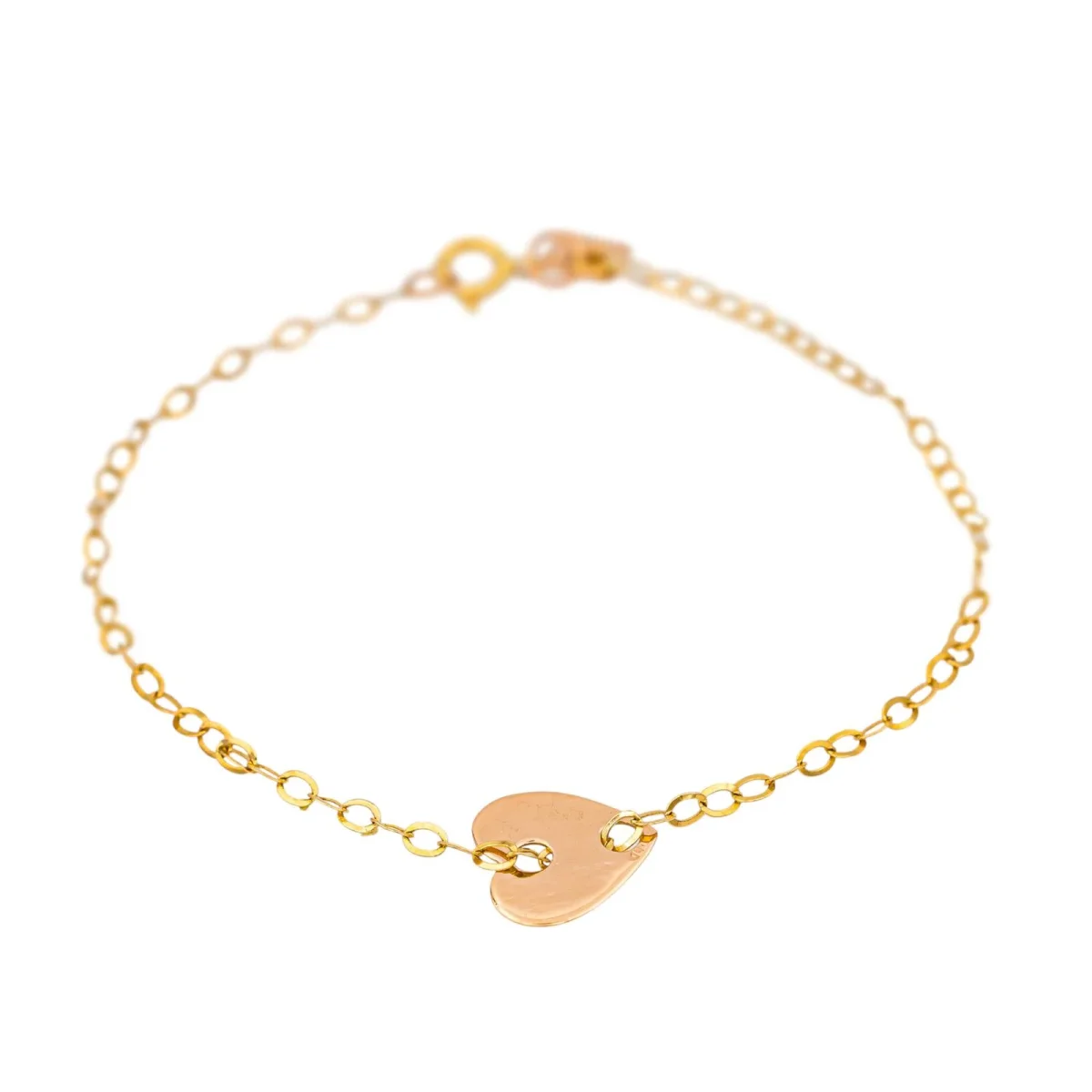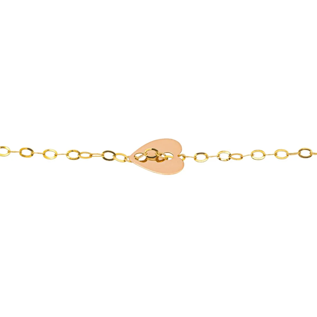 Bracelet signé de la Maison Ginette NY en or rose 750 millièmes (18 carats), modèle Angele mini heart, maille forçat, dimensions motif coeur : 1,13 x 1,12 cm, dimensions de la chaîne : 19 x 0,15 cm, poids total : 1,49 g, fermoir à anneau ressort, poinçon tête d’aigle, excellent état