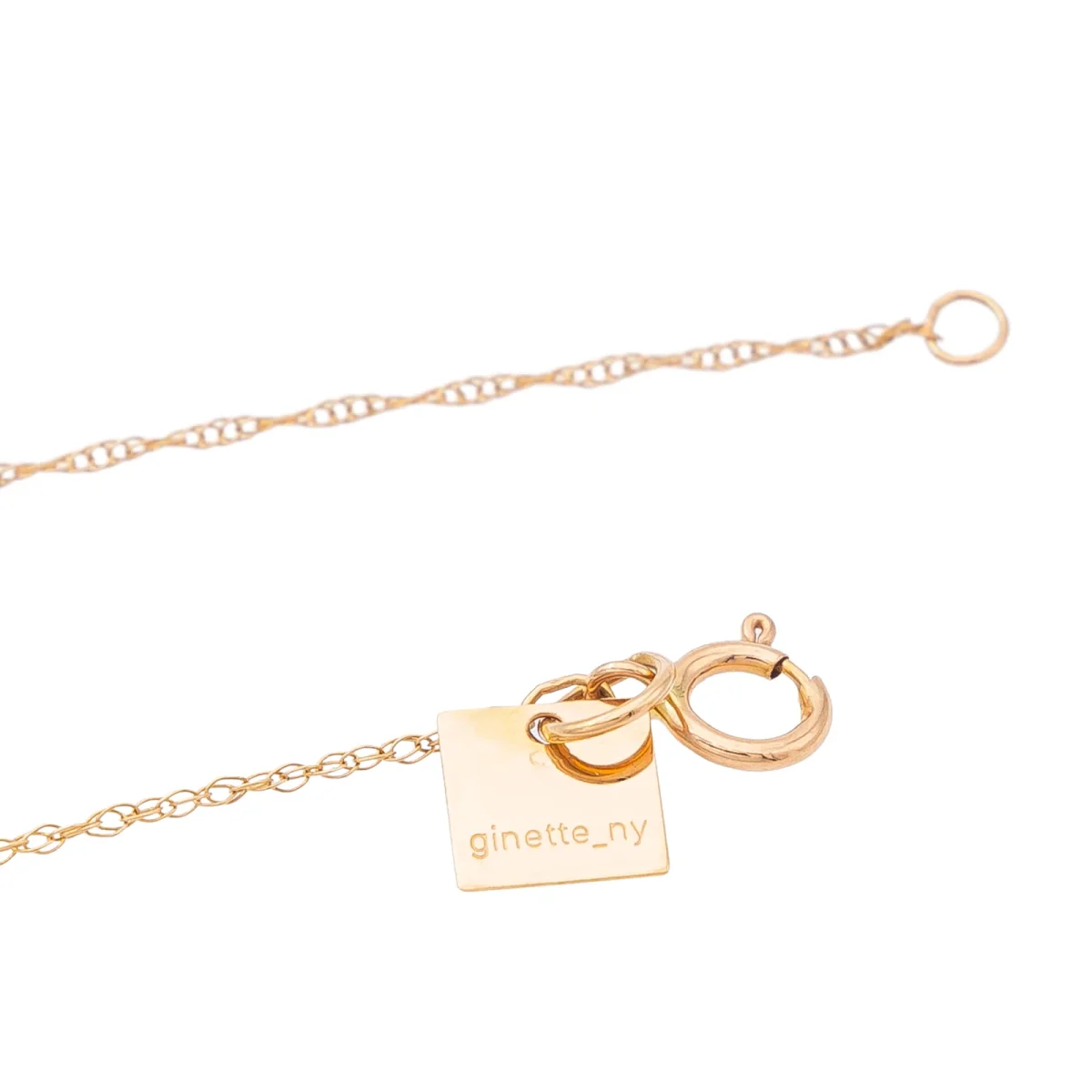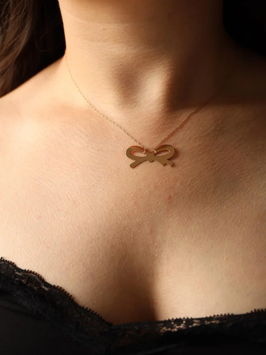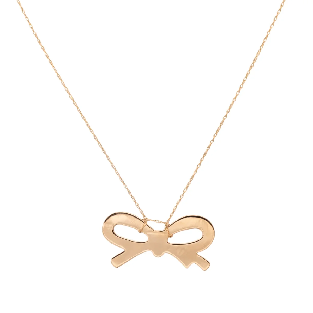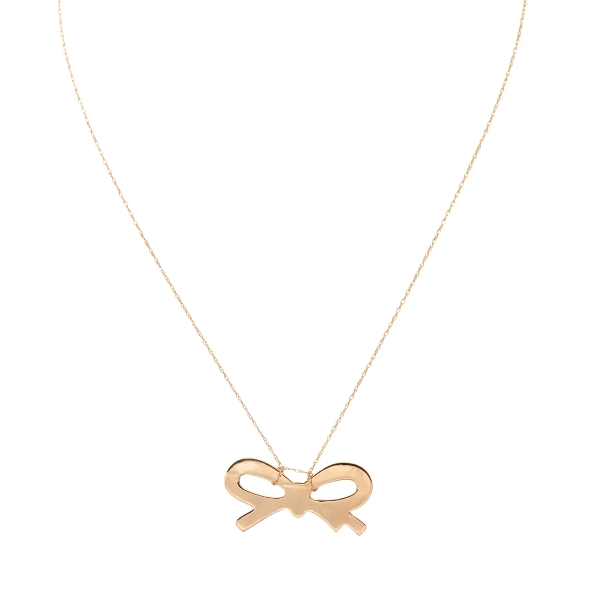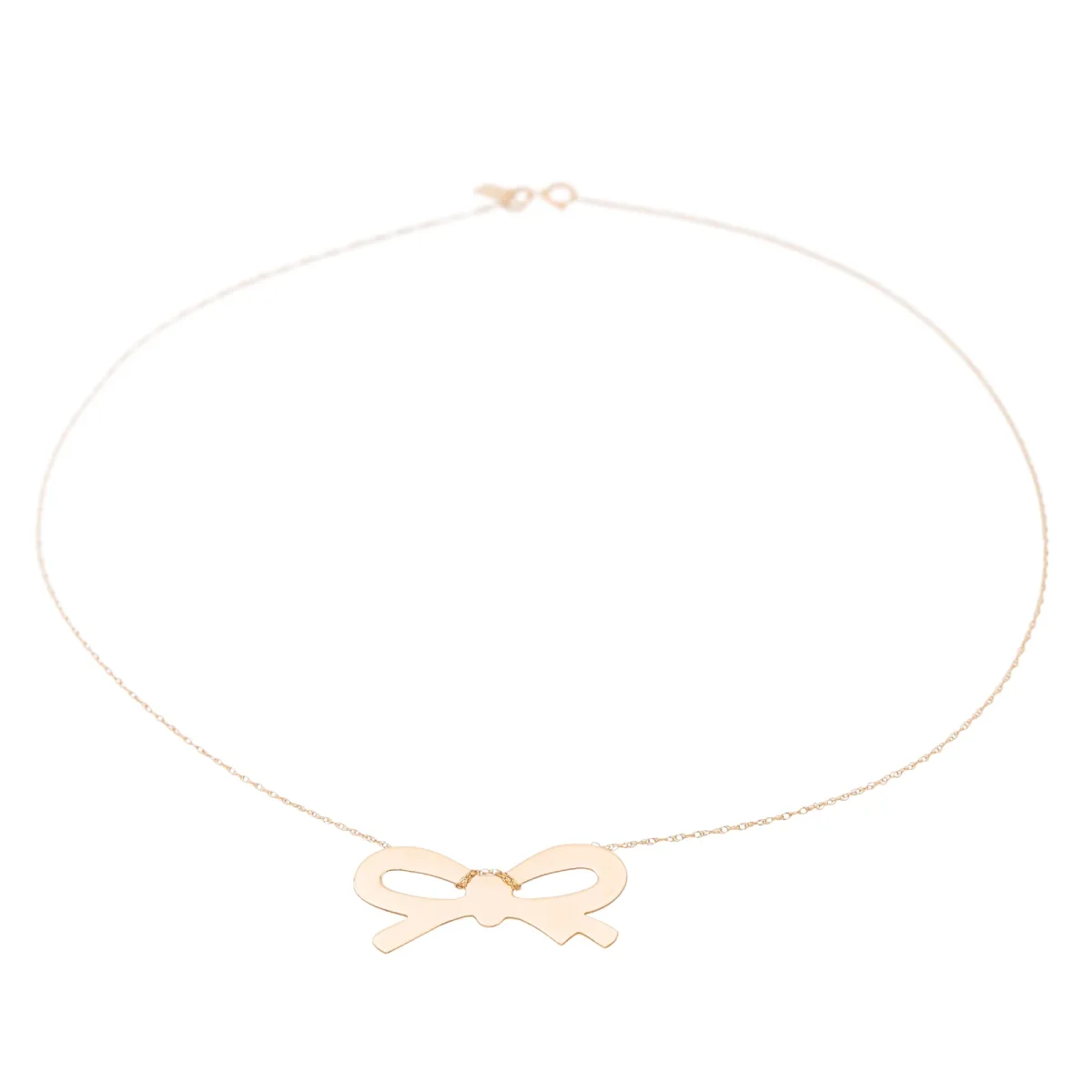 Collier signé de la Maison Ginette NY « Bow », en or rose 750 millièmes (18 carats) testé, longueur: 42 cm, dimensions du motif: 3,1 cm x 1,5 cm, poids total: 2,18 g, excellent état