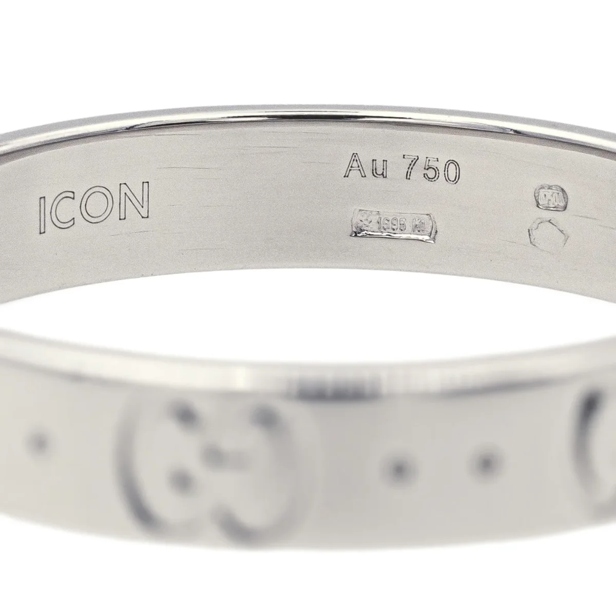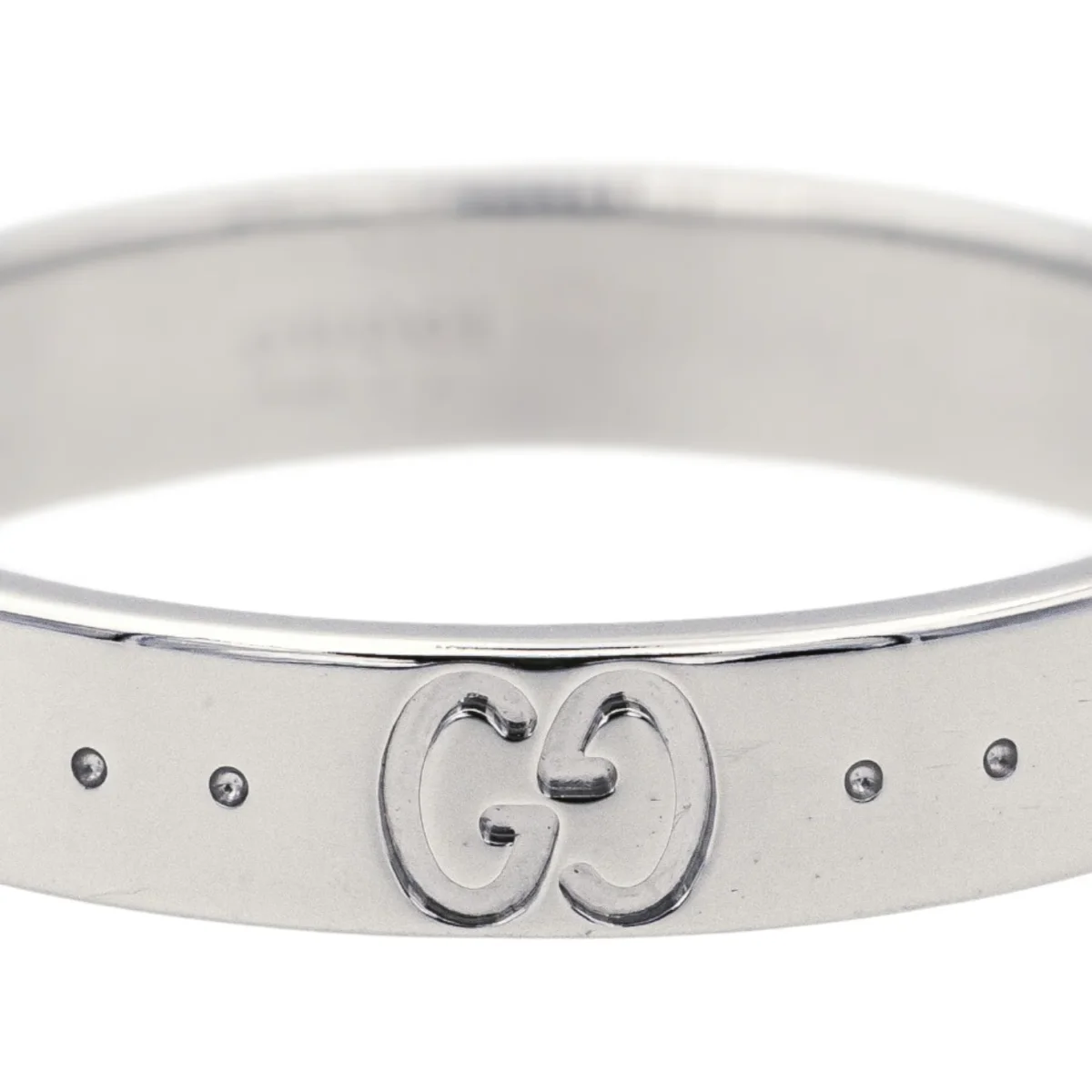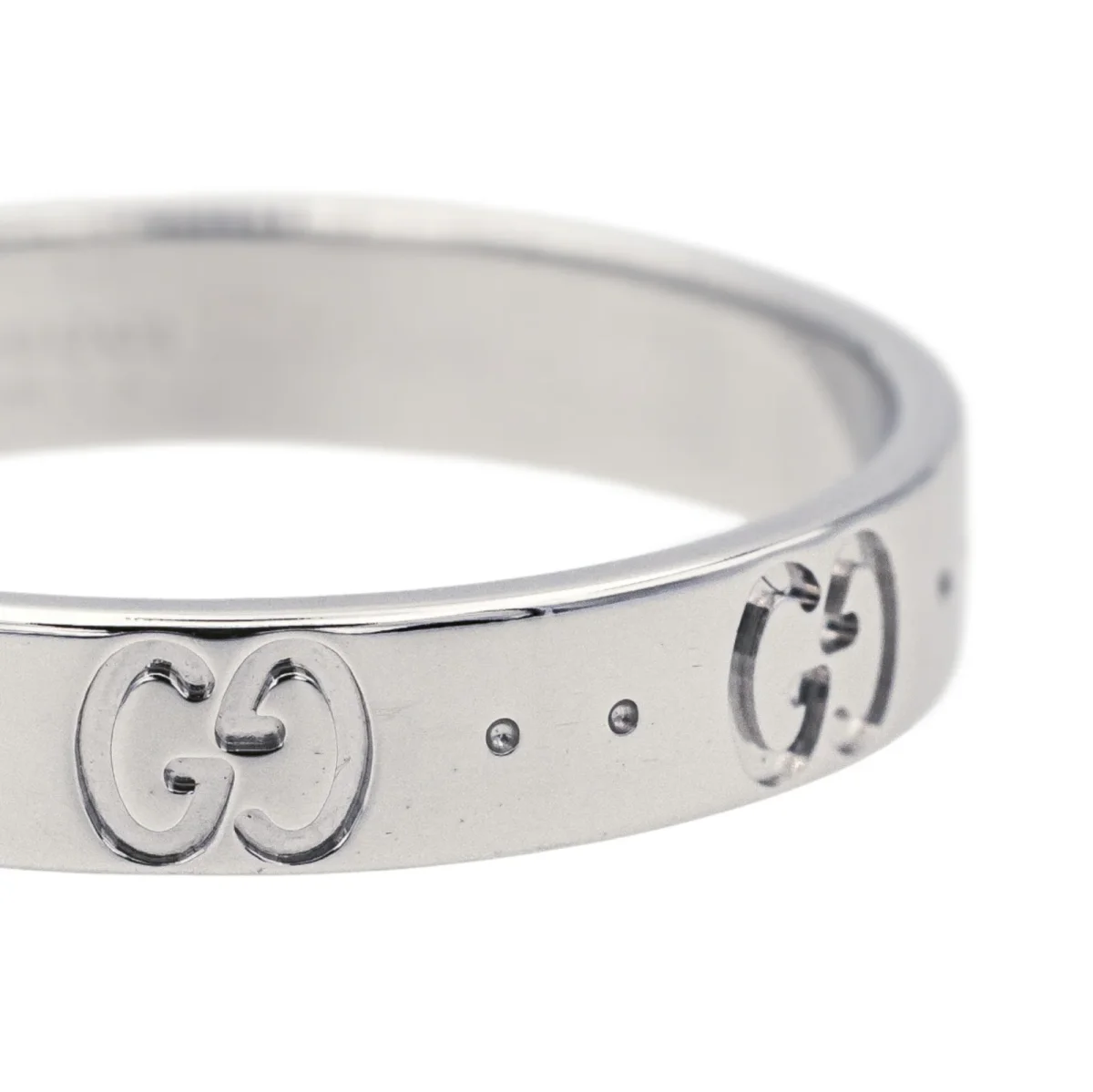 Bague signée de la Maison Gucci en or blanc 750 millièmes (18 carats), modèle Fine Icon, largeur sur le dessus: 0,38 cm, tour de doigt: 61,5, poids total: 4,22 g, poinçon tête de Saint Bernard, excellent état