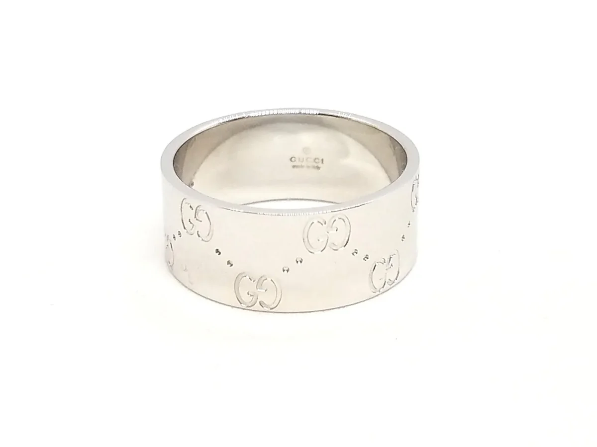 Bague signée de la maison Gucci, collection Icon, grand modèle, en or blanc 750 millièmes (18 carats), Tour de doigt: 61, largeur: 0,9 cm, poids total: 10,50 g, poinçon tête d’aigle à demi effacé, numéroté: 1695MI, excellent état