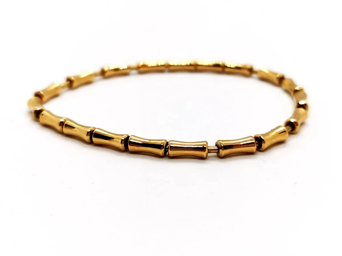 Bracelet signé de la maison Gucci, en or jaune 750 millièmes (18 carats), collection Bamboo, Taille 17, largeur: 0,36 cm, poids total: 7,76 g, poinçonné et signé, prix neuf: 1650€, excellent état