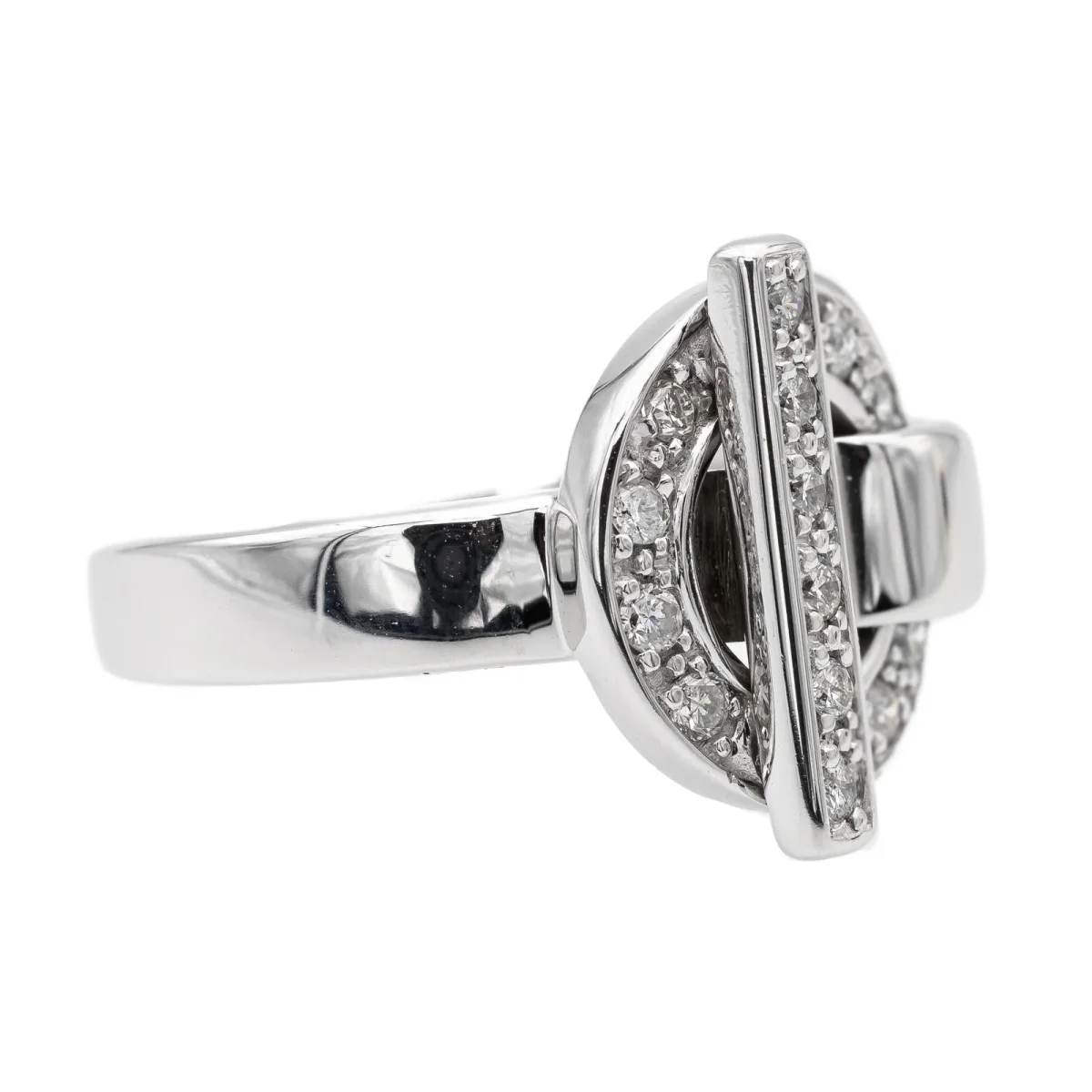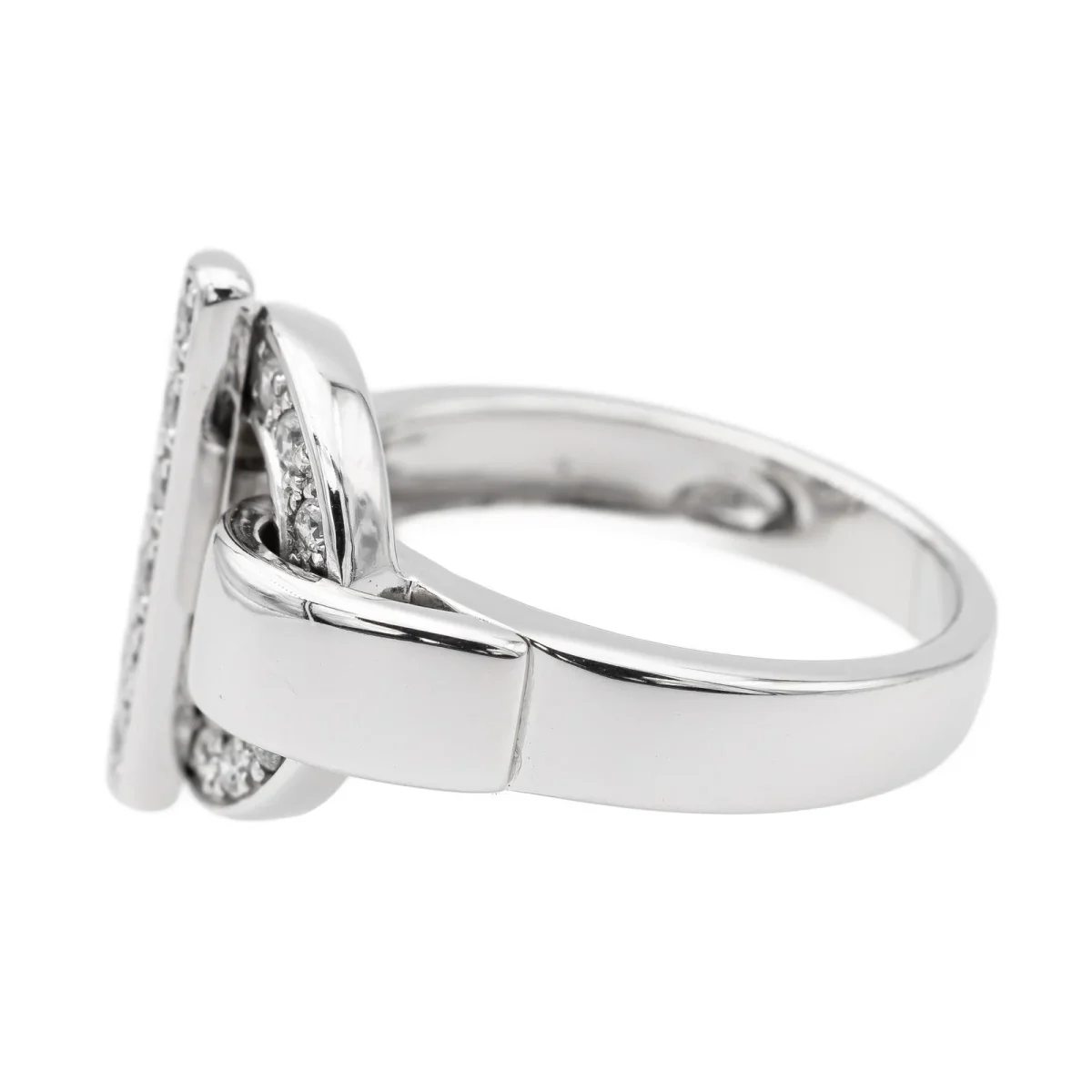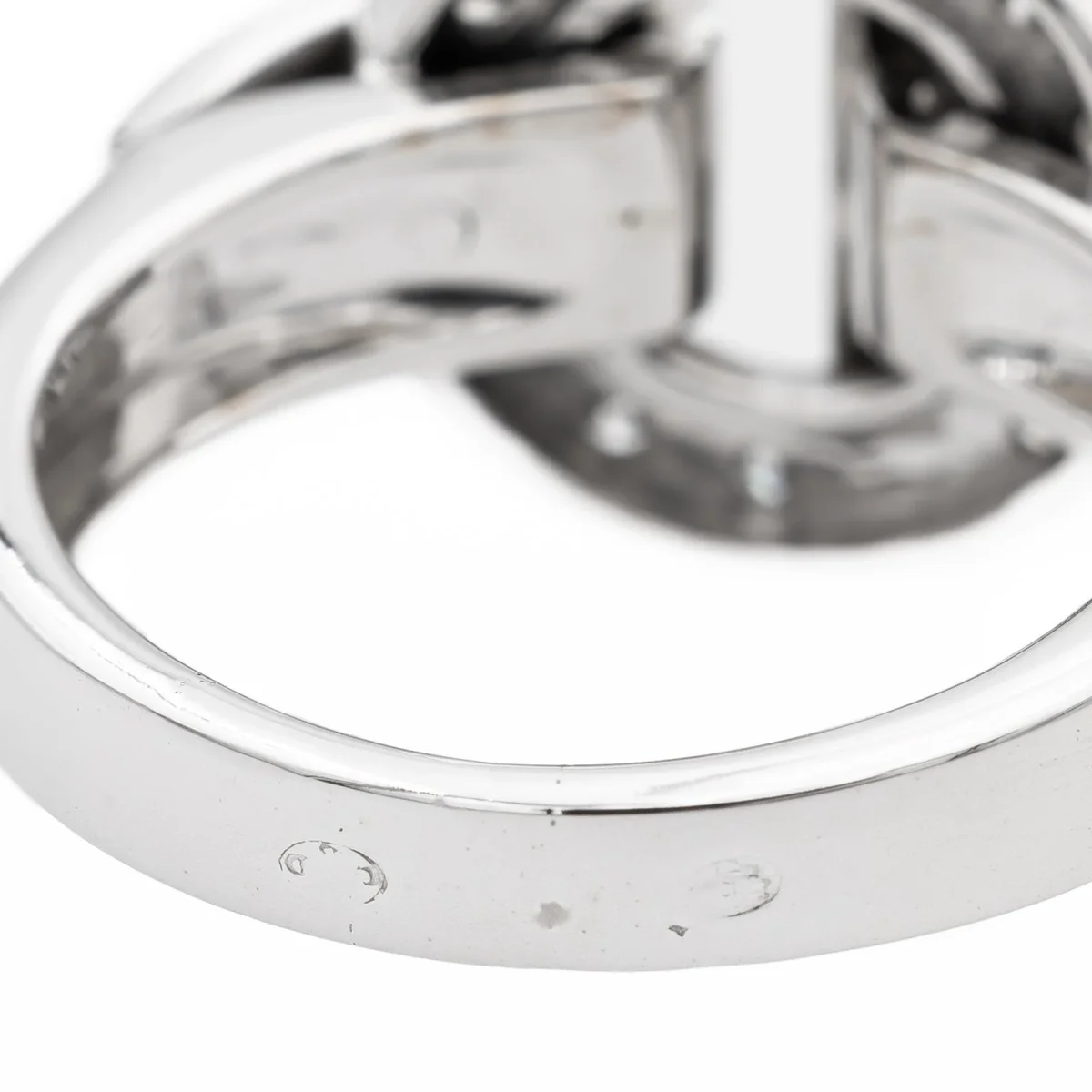 Bague en or blanc 750 millièmes (18 carats) signée Guy Laroche, sertie de 14 diamants taille brillant estimés H/VS, environ 0,01 ct chacun, Poids total estimé des diamants: 0,14 ct, Tour de doigt: 50, Largeur sur le dessus: 1,50 cm, Poids total: 7,27 g, Poinçon hibou, Excellent état