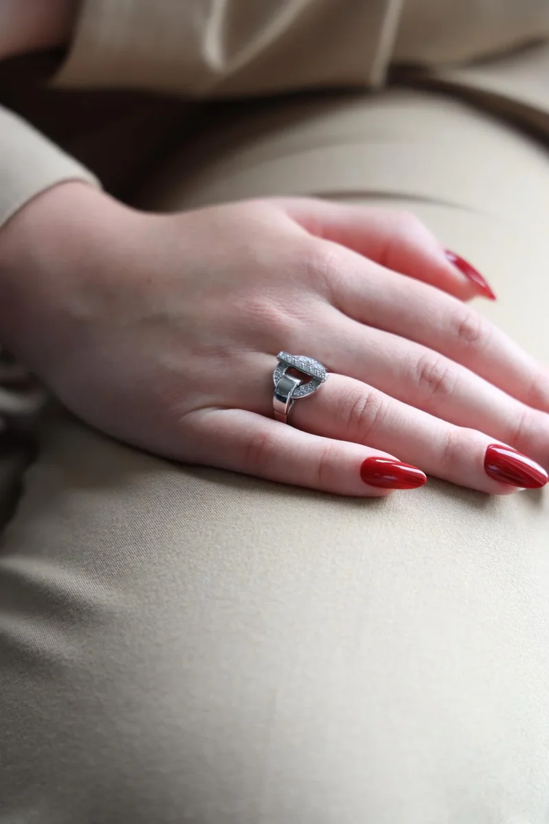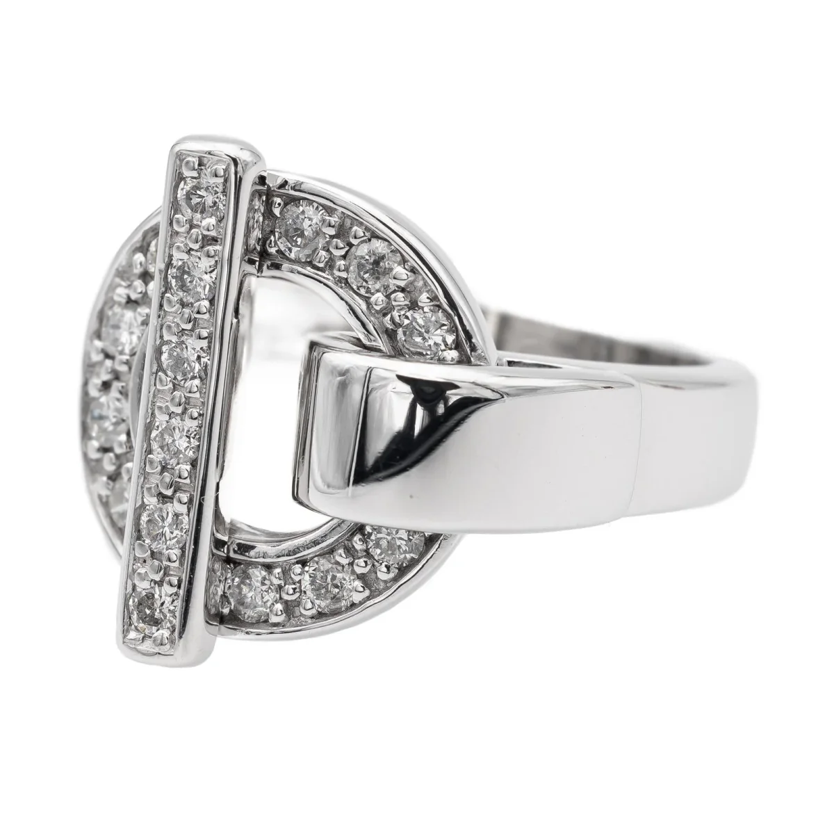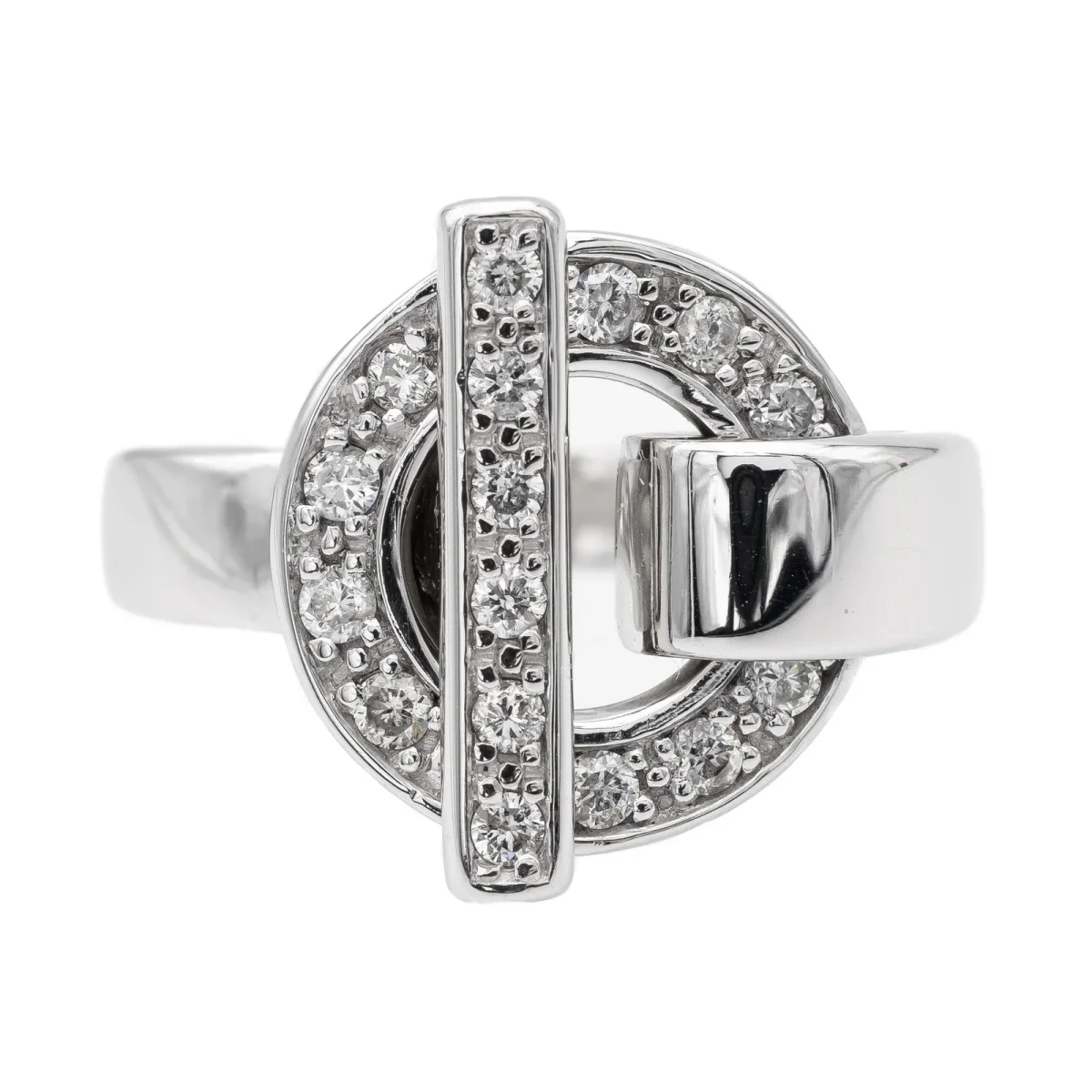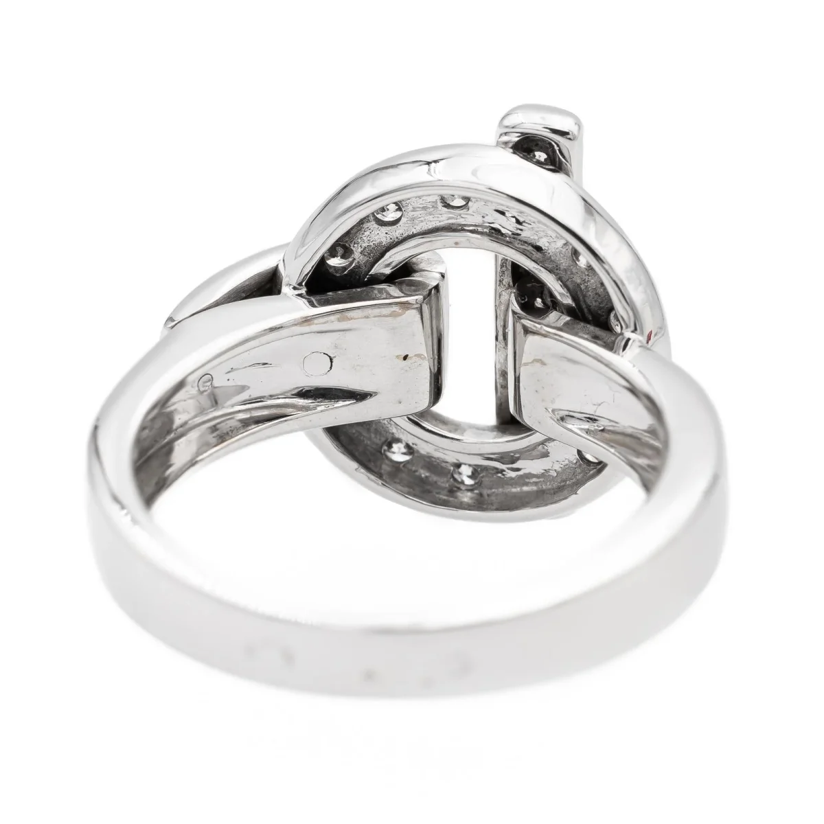 Bague en or blanc 750 millièmes (18 carats) signée Guy Laroche, sertie de 14 diamants taille brillant estimés H/VS, environ 0,01 ct chacun, Poids total estimé des diamants: 0,14 ct, Tour de doigt: 50, Largeur sur le dessus: 1,50 cm, Poids total: 7,27 g, Poinçon hibou, Excellent état