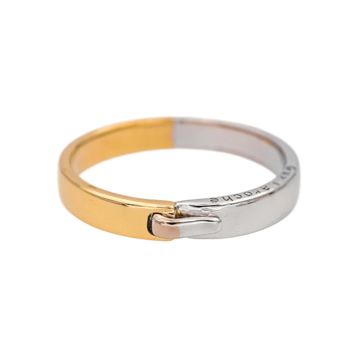 Bague signée de la Maison Guy Laroche en or blanc et jaune 750 millièmes (18 carats), largeur sur le dessus : 0,35 cm, tour de doigt : 57, poids total : 4.37g, poinçon tête d’aigle, très bon état