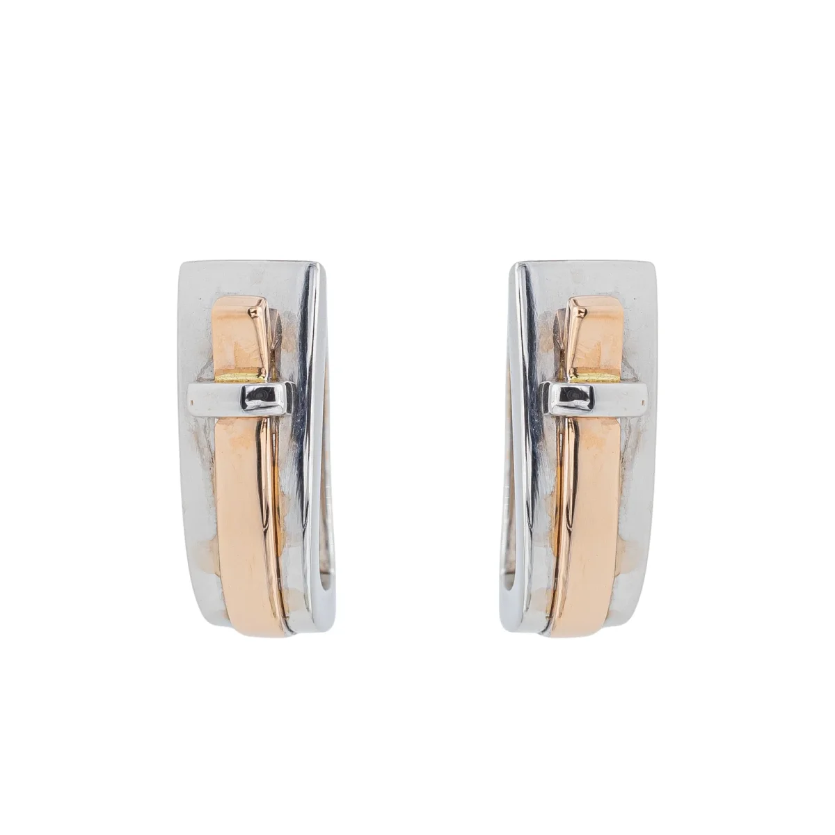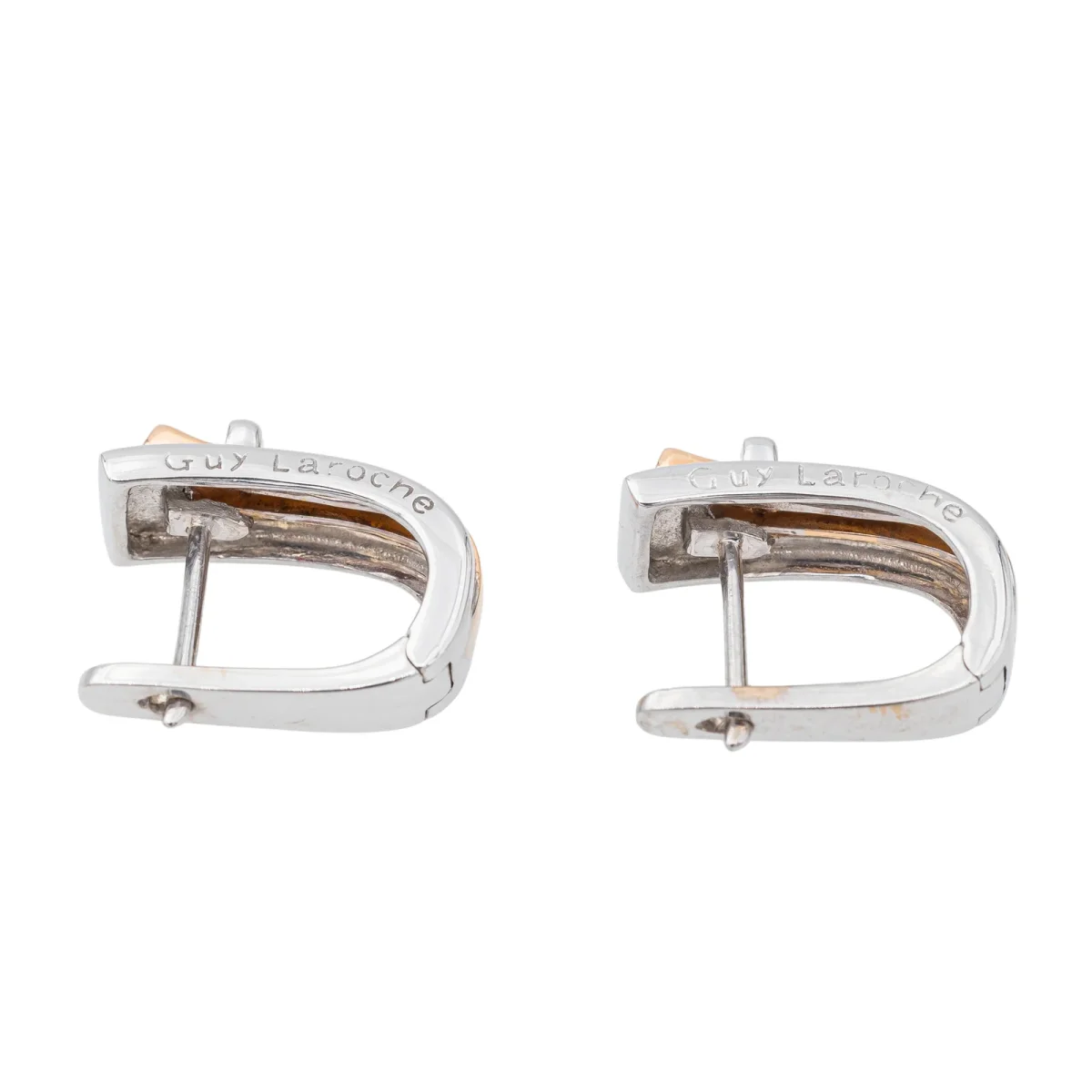 Boucles d’oreilles, signées de la maison Guy Laroche, bicolore, en or 750 millièmes (18 carats) testé, or blanc et or rose, dimensions: 1,49 cm x 0,58 cm, poids total: 5,08 g, excellent état