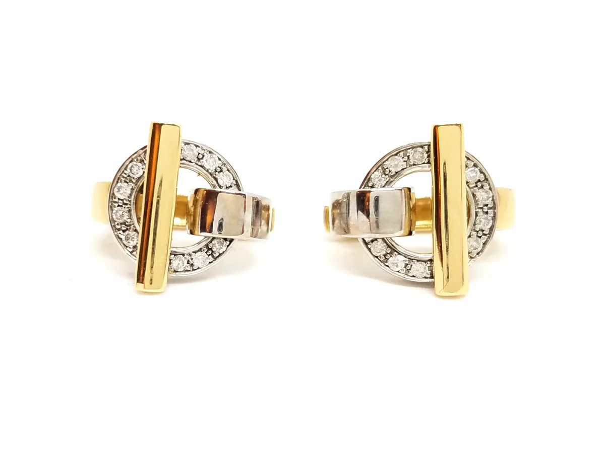 Boucles d’oreilles signées Guy Laroche, bicolores, en or jaune et blanc 750 millièmes (18 carats), serties de 20 diamants taille brillant G-H V-SI pour un total d’environ 0,20 ct, dimensions: 1,64 cm x 1,36 cm, poids total: 8,43 g, poinçon sur la tige, excellent état