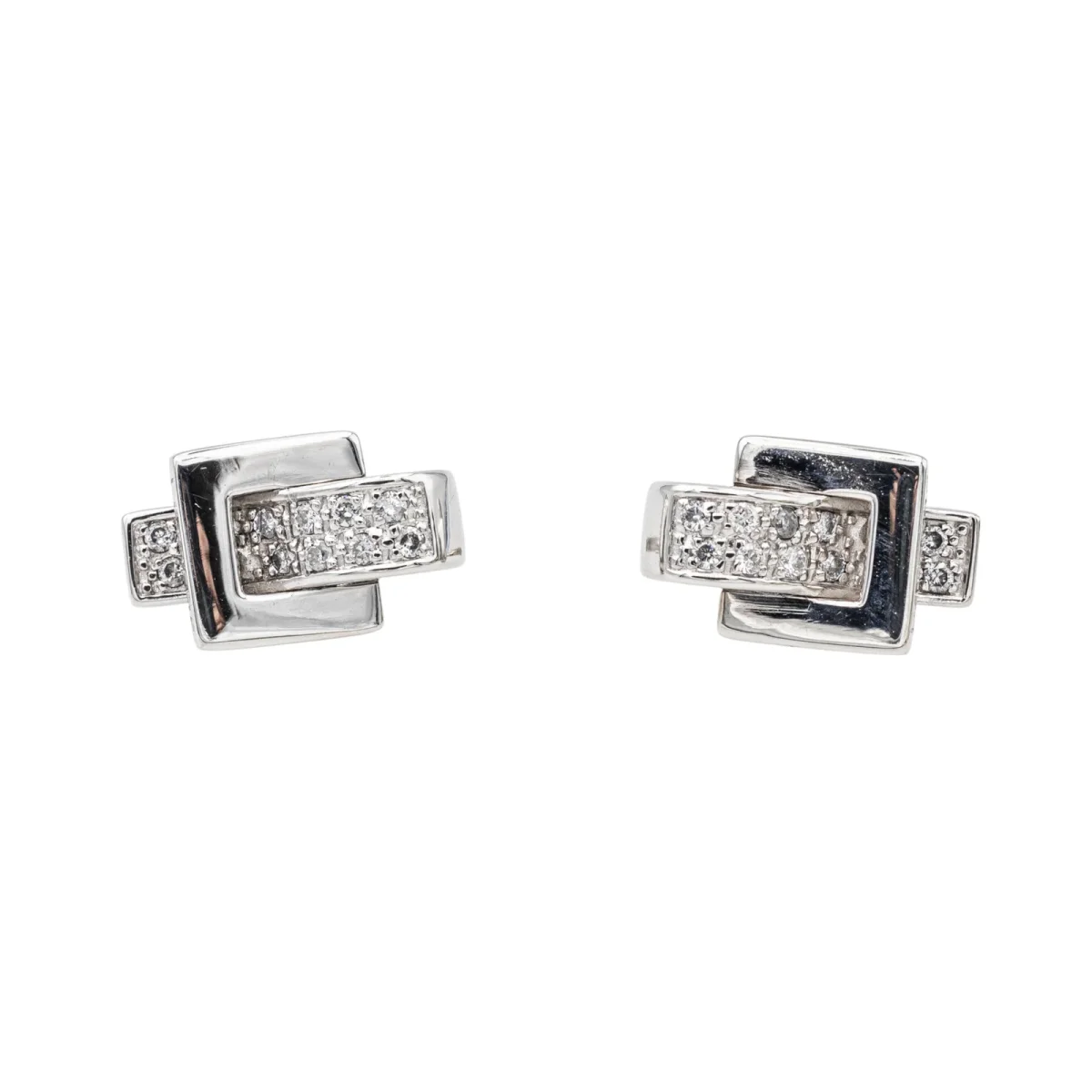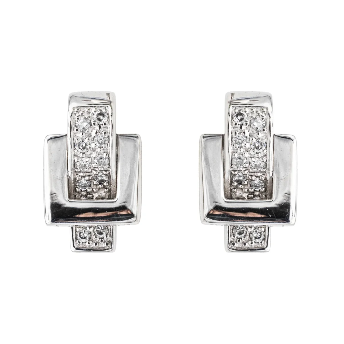 Boucles d’oreilles signées de la Maison Guy Laroche en or blanc 750 millièmes (18 carats) testé, serties de 20 diamants taille brillant, environ G-SI, poids total de diamant environ : 0,10 ct, (chaque diamant d’un poids d’environ 0,005 ct), dimensions : 0,82 cm x 1,40 cm, poids total : 4,29 g, excellent état