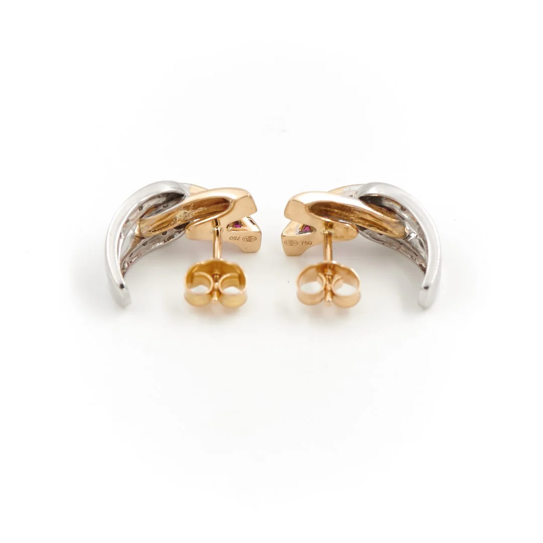 Guy laroche Boucles d’oreilles Puces Or jaune, Or blanc Diamant, Rubis