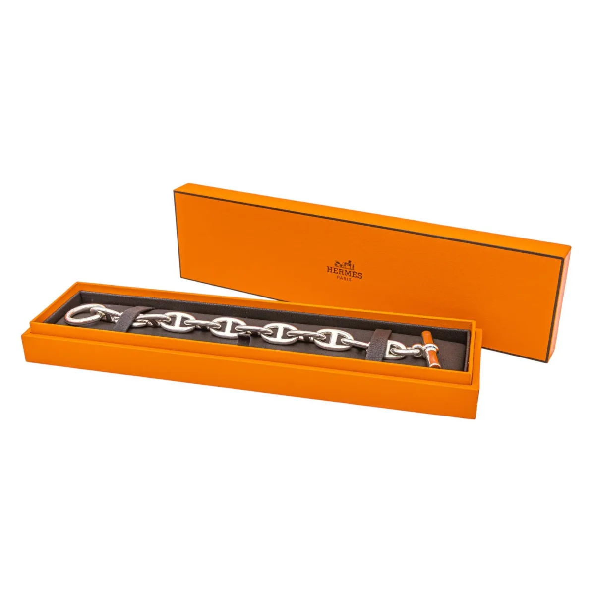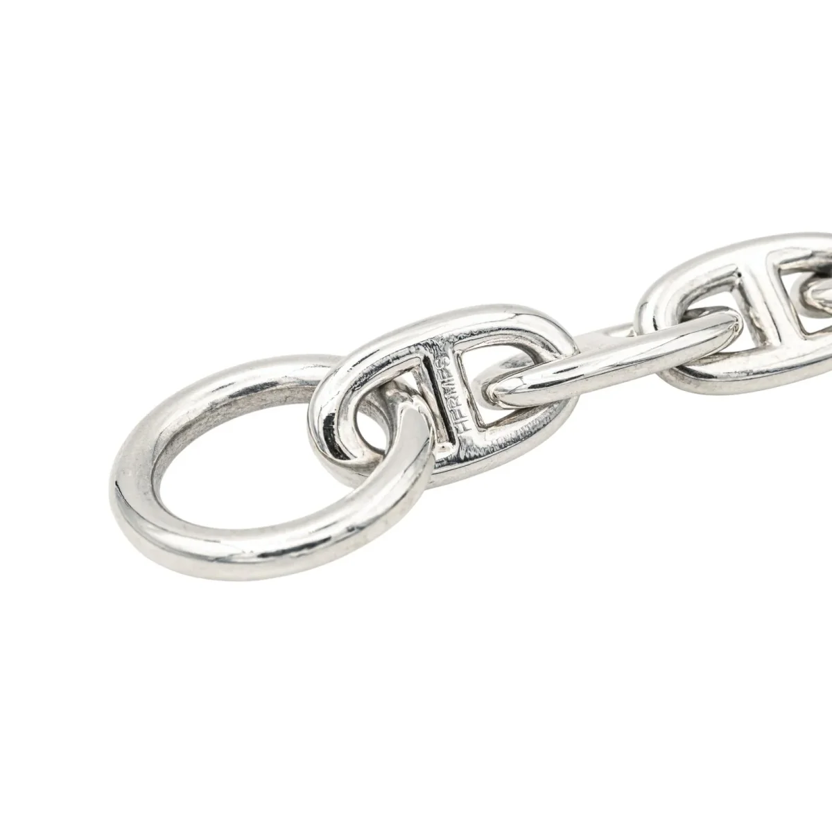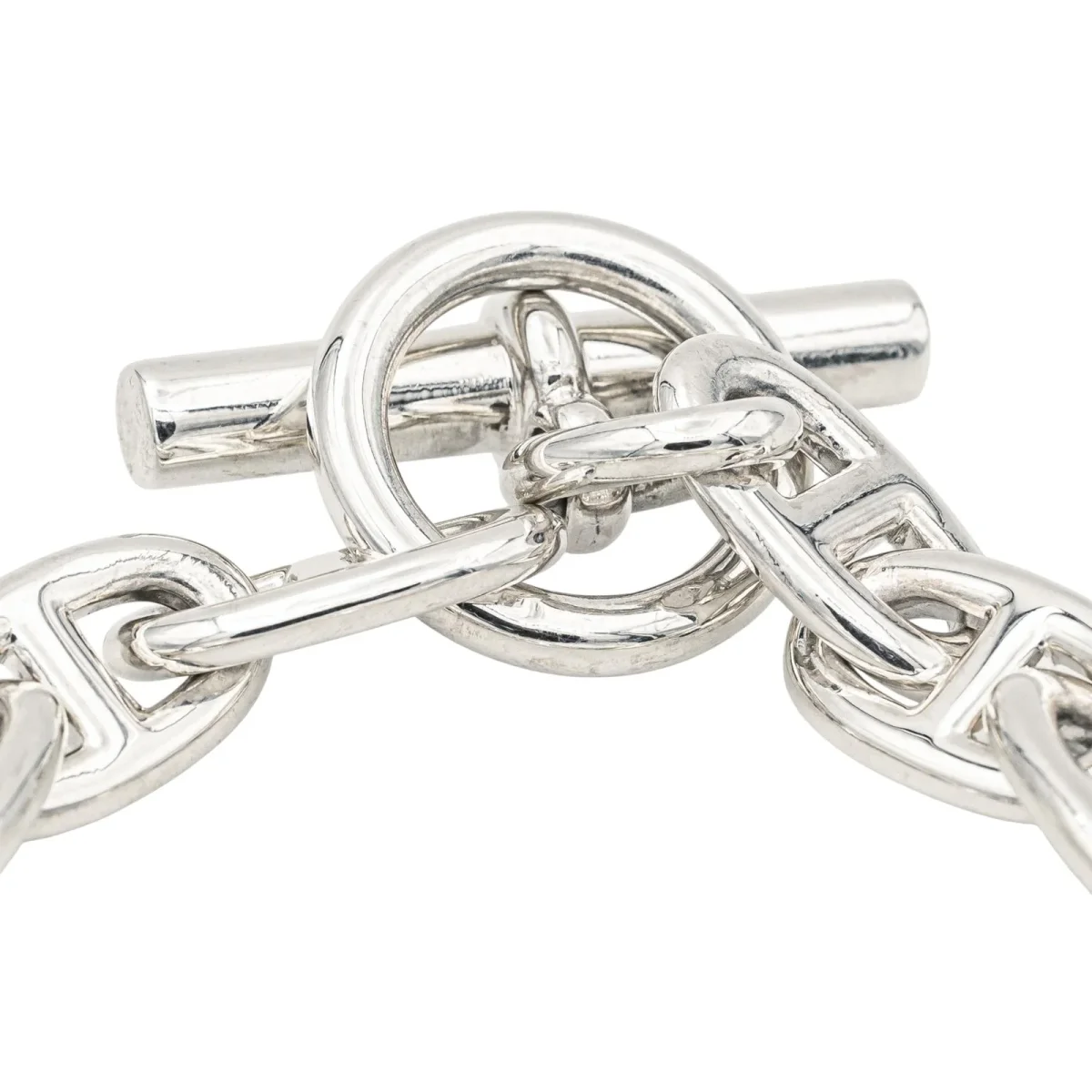 Bracelet signé de la Maison Hermès en argent 925 millièmes, moyen modèle chaîne d’ancre, maille marine, longueur : 20 cm, largeur : 1,16 cm, épaisseur : 0,29 cm, poids total : 67,17 g, fermoir avec « T », poinçon cygne, excellent état