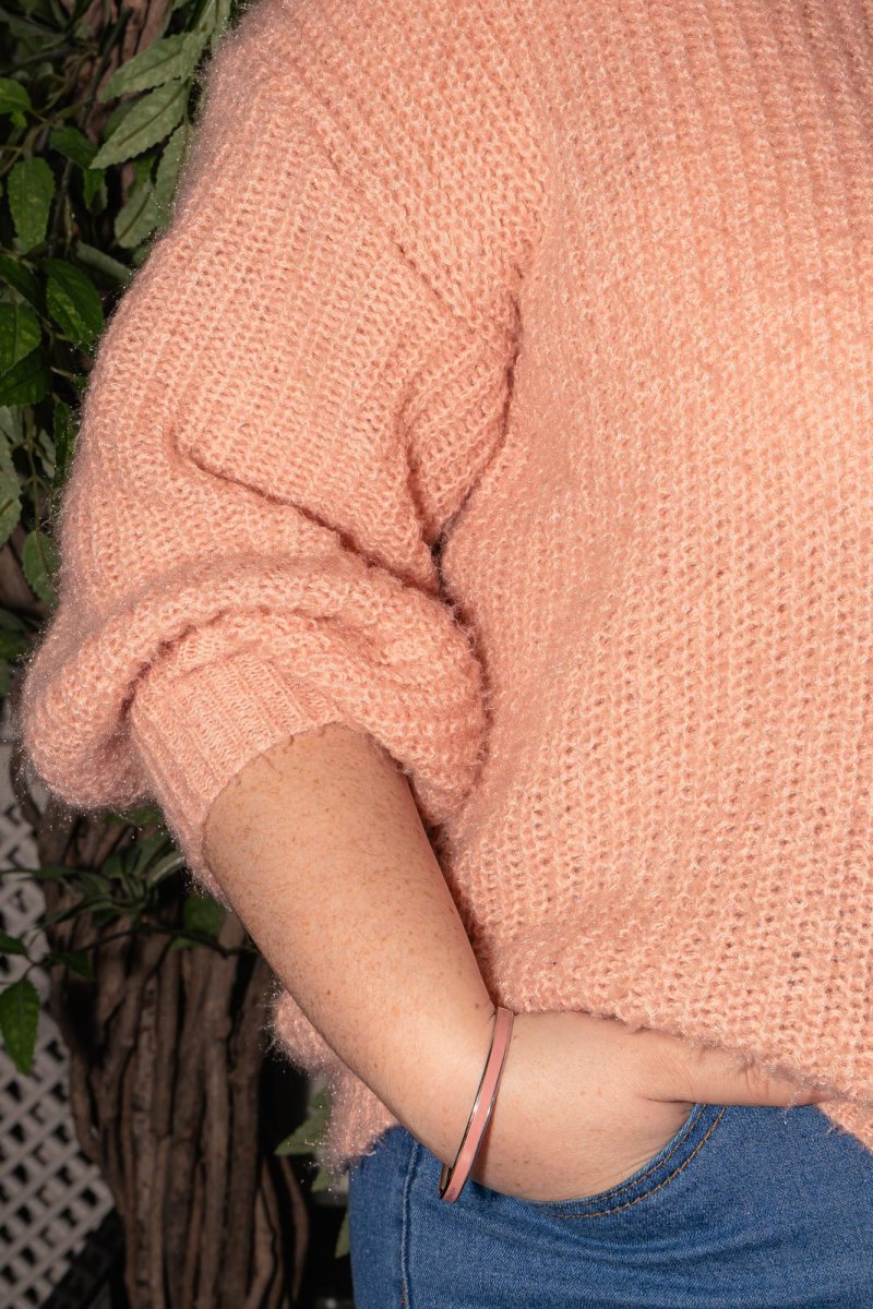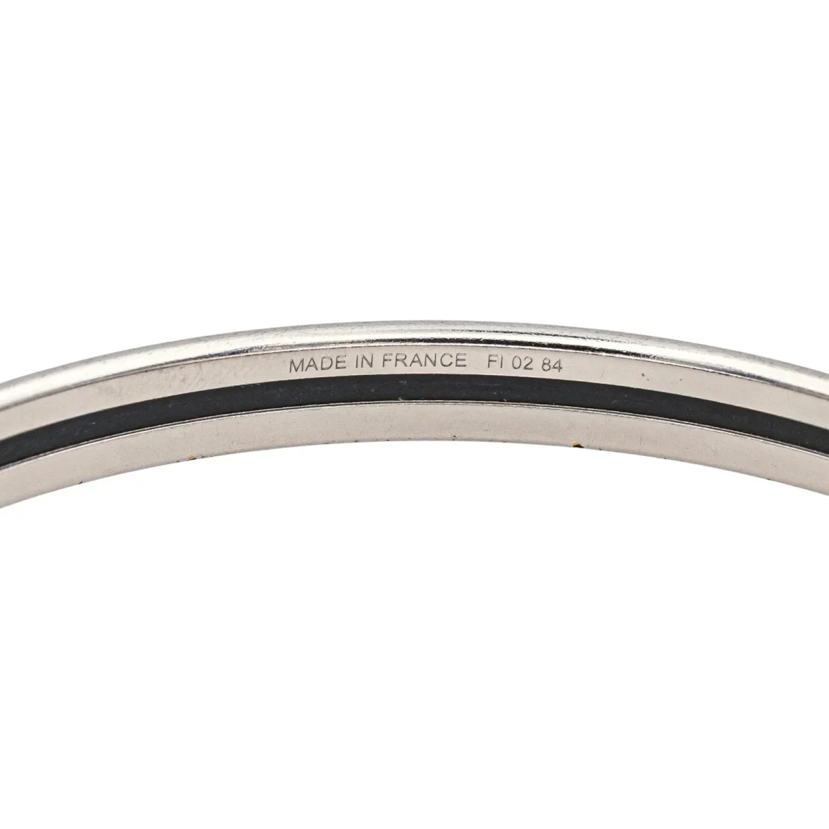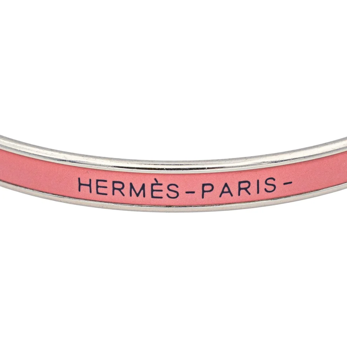 Bracelet signé de la maison Hermès en métal argenté, en émail rose, diamètre : 5,90 cm, largeur : 0,60 cm, poids total: 10,70 g, bon état