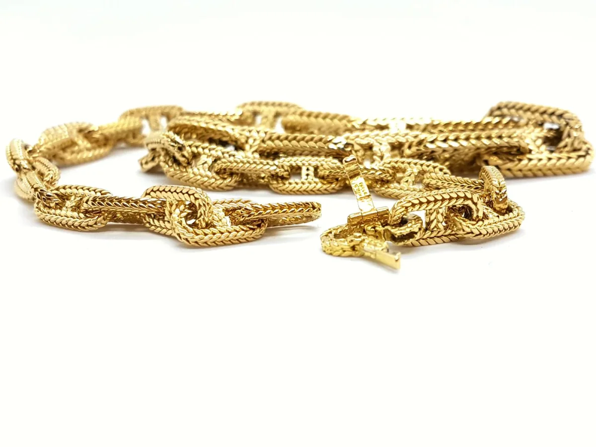 Collier Vendôme, signé de la maison Hermès, modèle chaîne d’ancre, en Or jaune 750 millièmes (18 carats), maille massive, numéroté 33476, Poinçonné, Taille: 45 cm, largeur du motif 0,7 cm, Poids total: 105,99 g, Excellent état