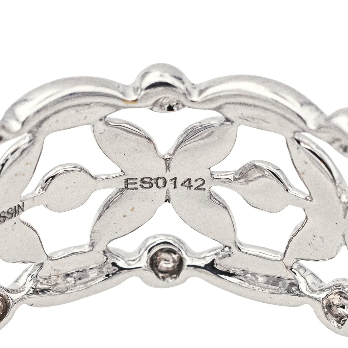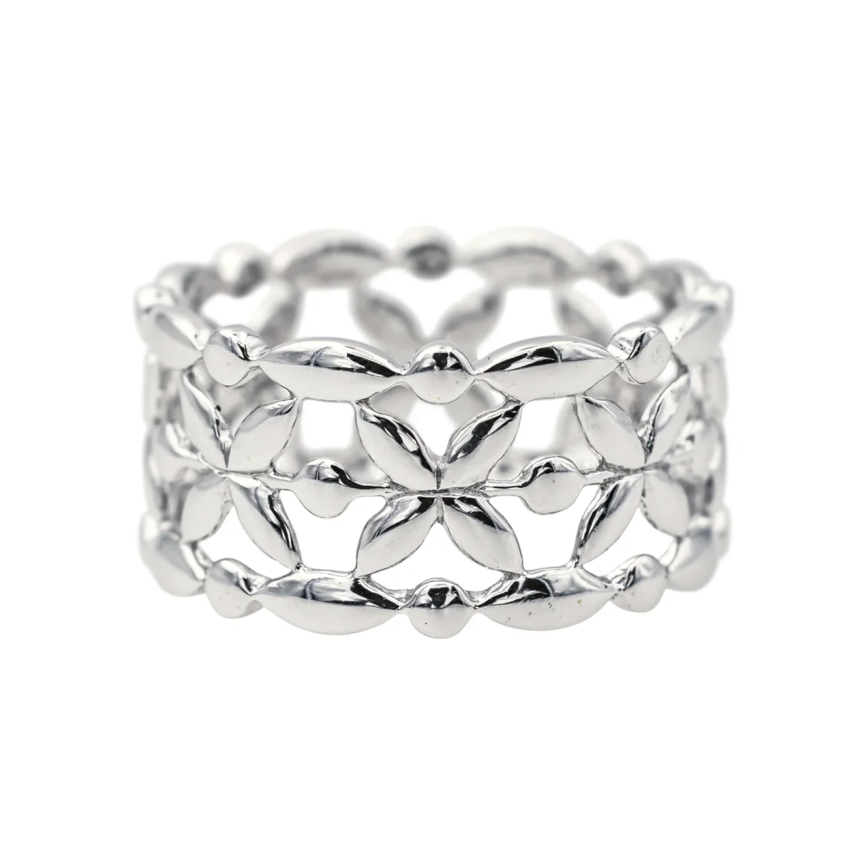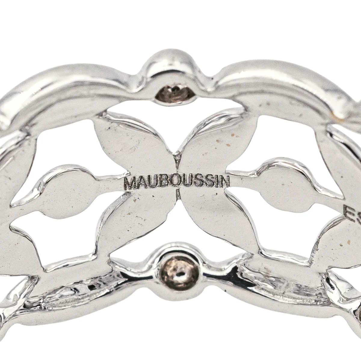 Bague bandeau signée de la maison Mauboussin en or blanc 750 millièmes (18 carats) à motif floral, largeur : 1,00 cm, tour de doigt : 54, poids total : 4,25g, poinçon tête d’aigle, excellent état