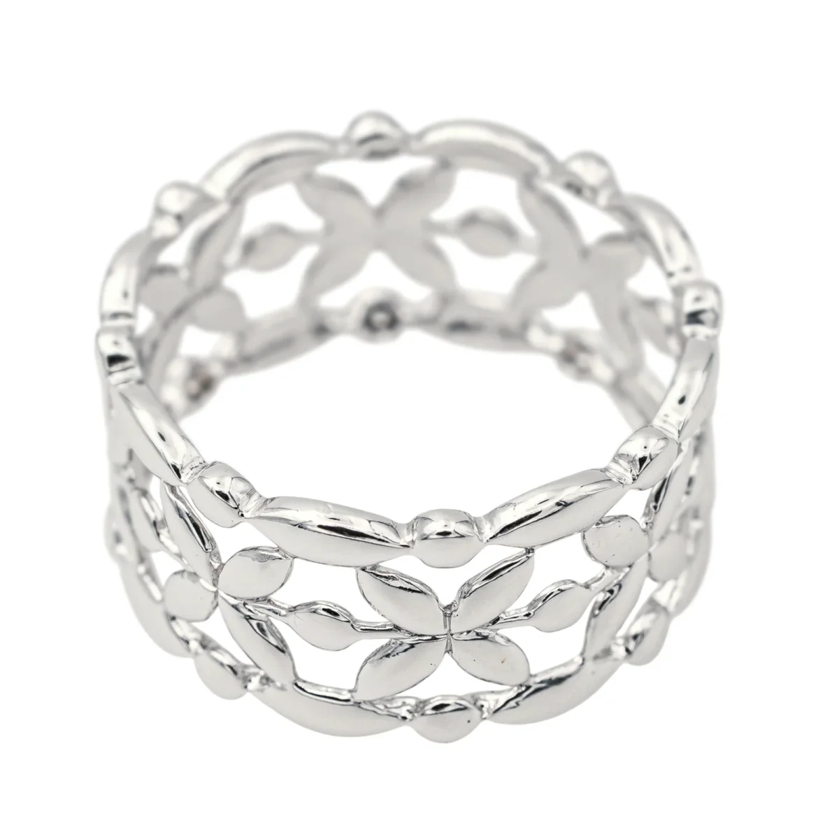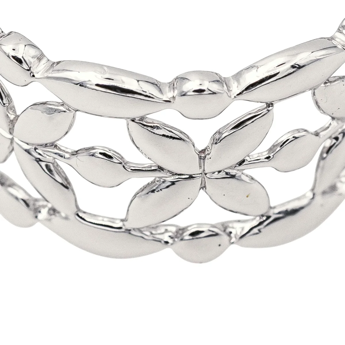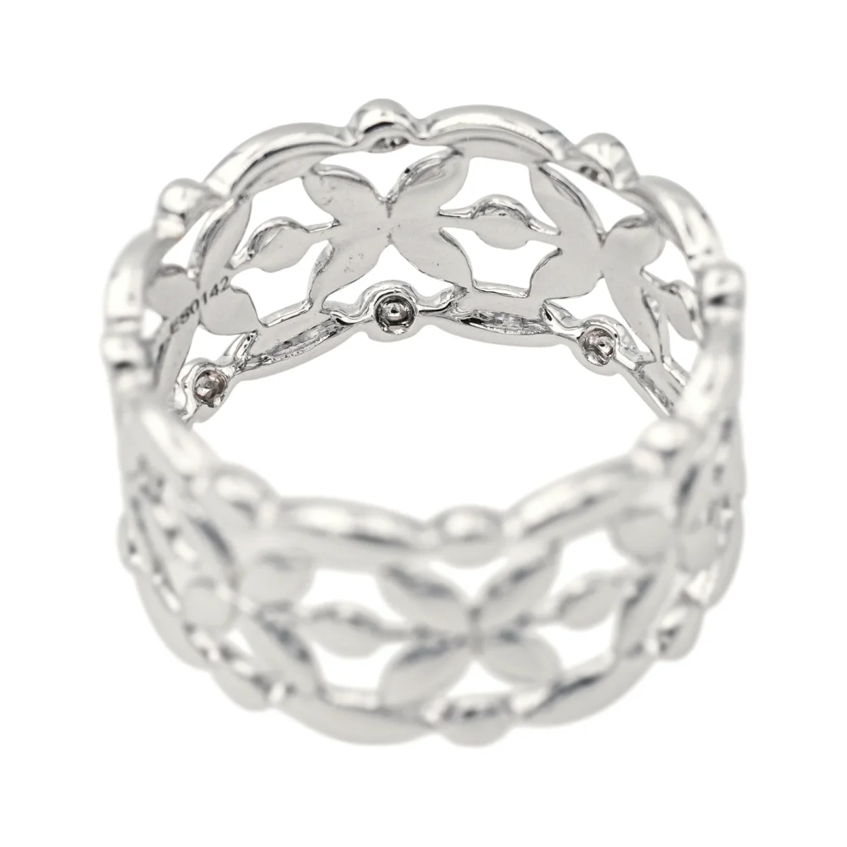 Bague bandeau signée de la maison Mauboussin en or blanc 750 millièmes (18 carats) à motif floral, largeur : 1,00 cm, tour de doigt : 54, poids total : 4,25g, poinçon tête d’aigle, excellent état