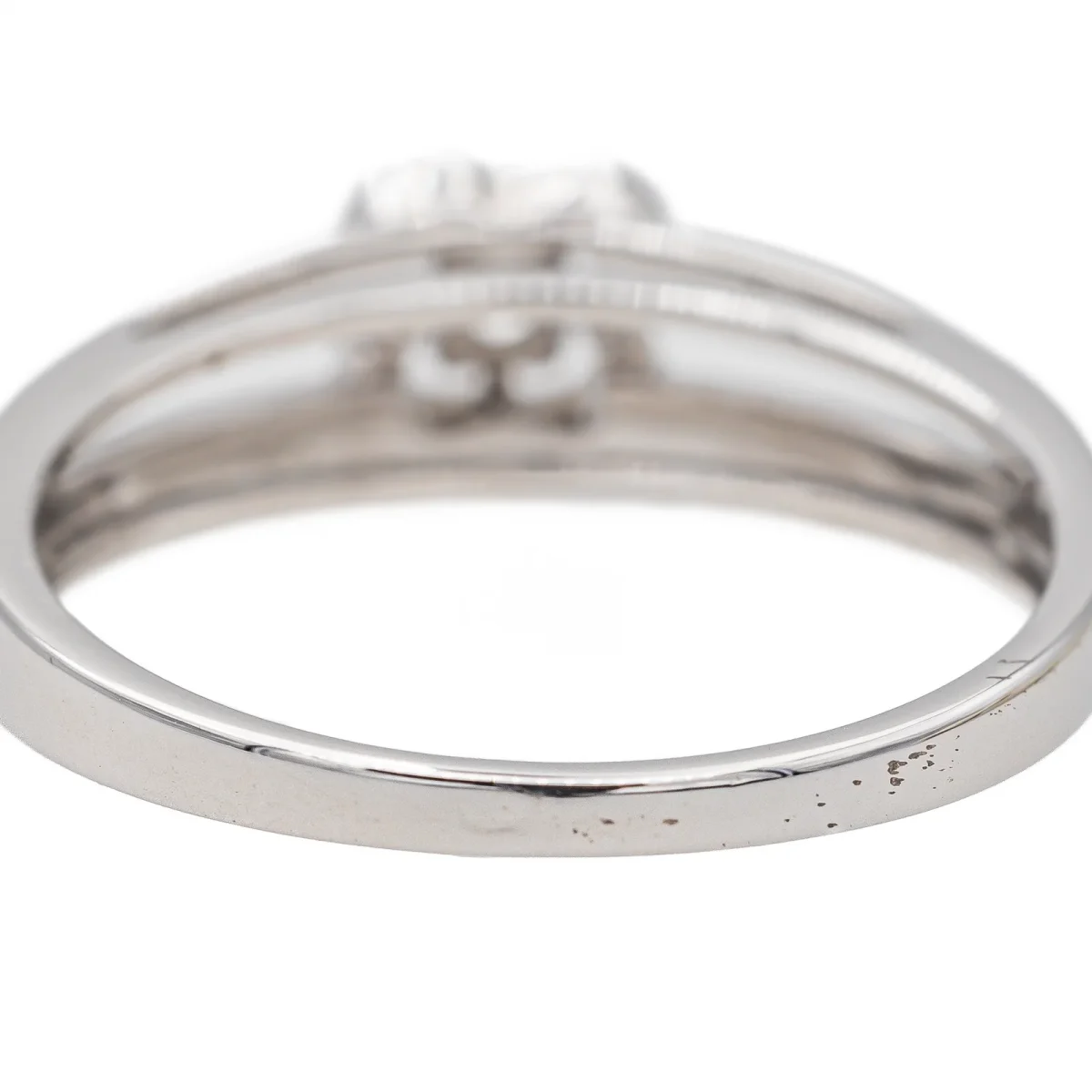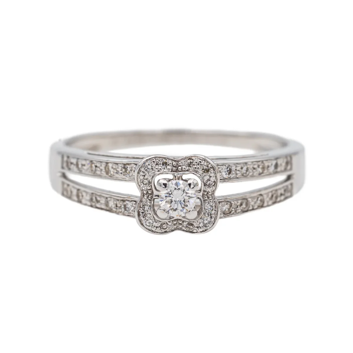 Bague signée de la Maison Mauboussin en or blanc 750 millièmes (18 carats), modèle Chance of Love N°1, sertie d’un diamant central taille brillant environ H/SI d’environ 0,08 ct, entouré de 32 diamants estimés H/SI, d’un poids total d’environ 0,11 ct (chaque diamant d’un poids d’environ 0,003 ct), poids total estimé des diamants: 0,19 ct, tour de doigt : 58, largeur : 0,62 cm, numérotée ET9242, poids total: 3,49 g, poinçon hibou, excellent état