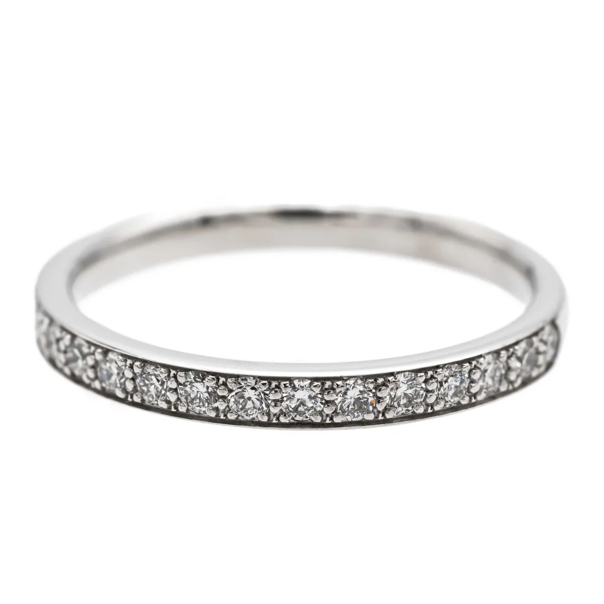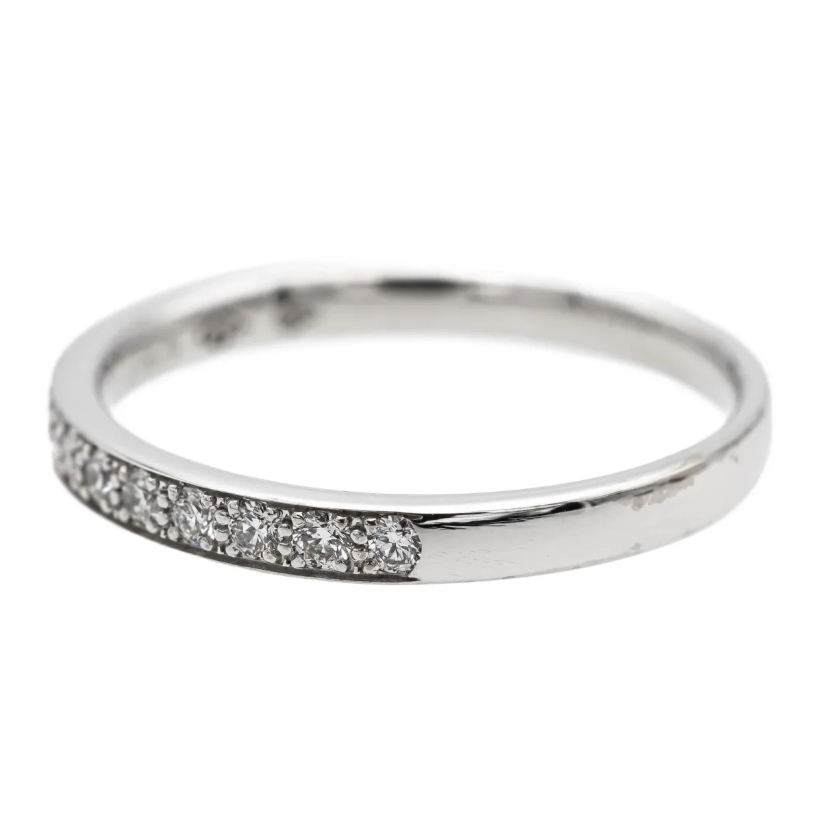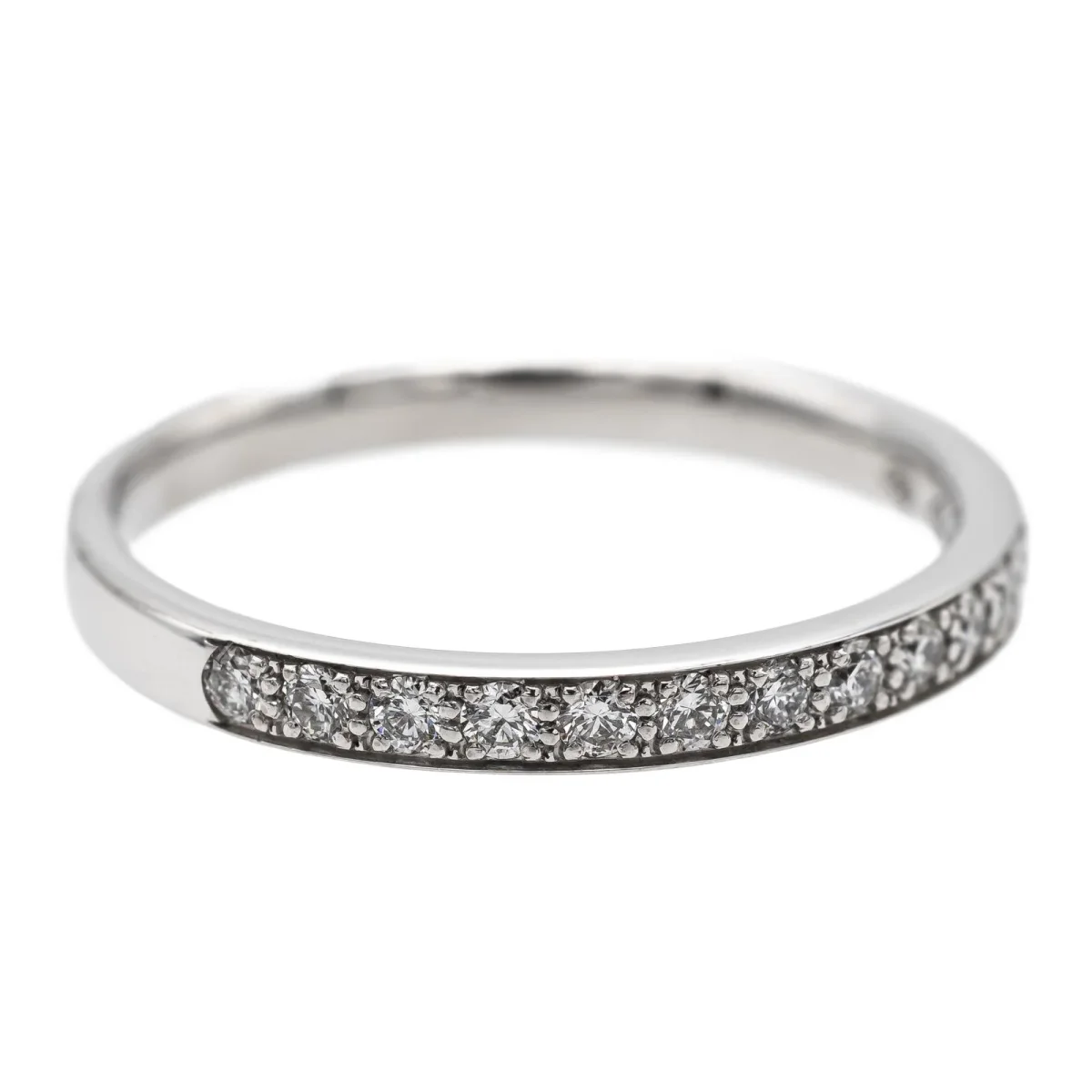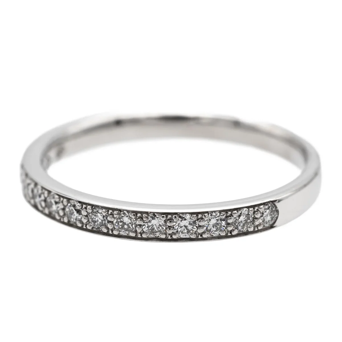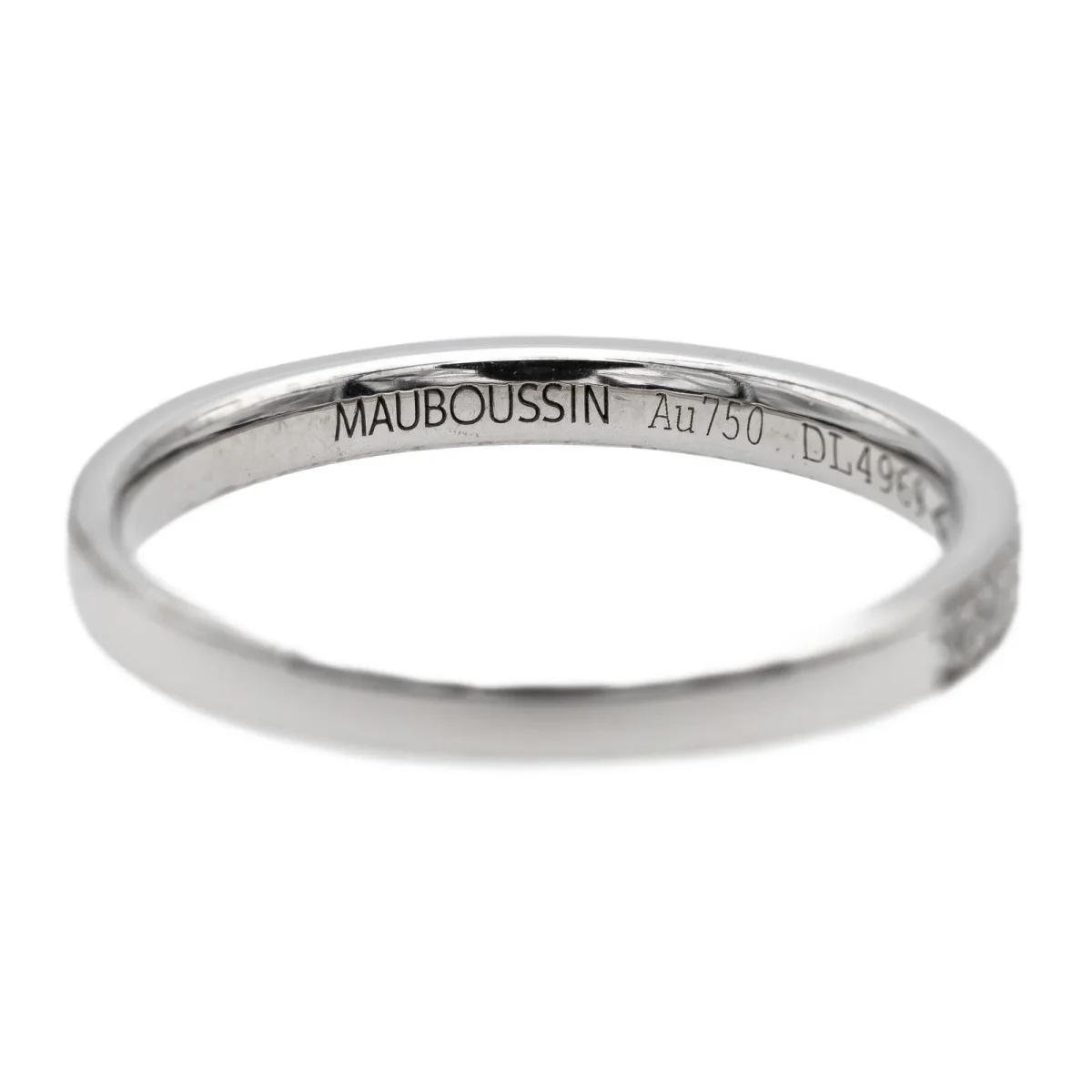 Demi alliance signée de la maison Mauboussin, Collection: Lovissime Aussi, en or blanc 750 millièmes (18 carats), sertie de 17 diamants, taille brillant H/SI, pour un total d’environ 0,25 ct, tour de doigt: 50, largeur: 0,2 cm, poids total: 1,98 g, signée et numérotée: DL4969, poinçon tête d’aigle, prix neuf: 1290€, excellent état