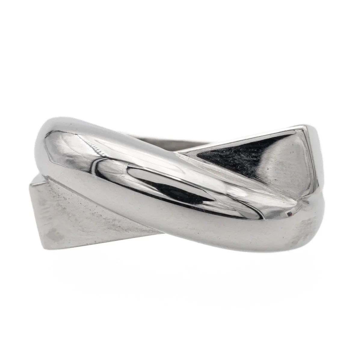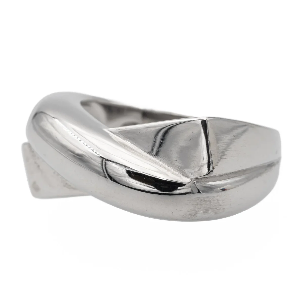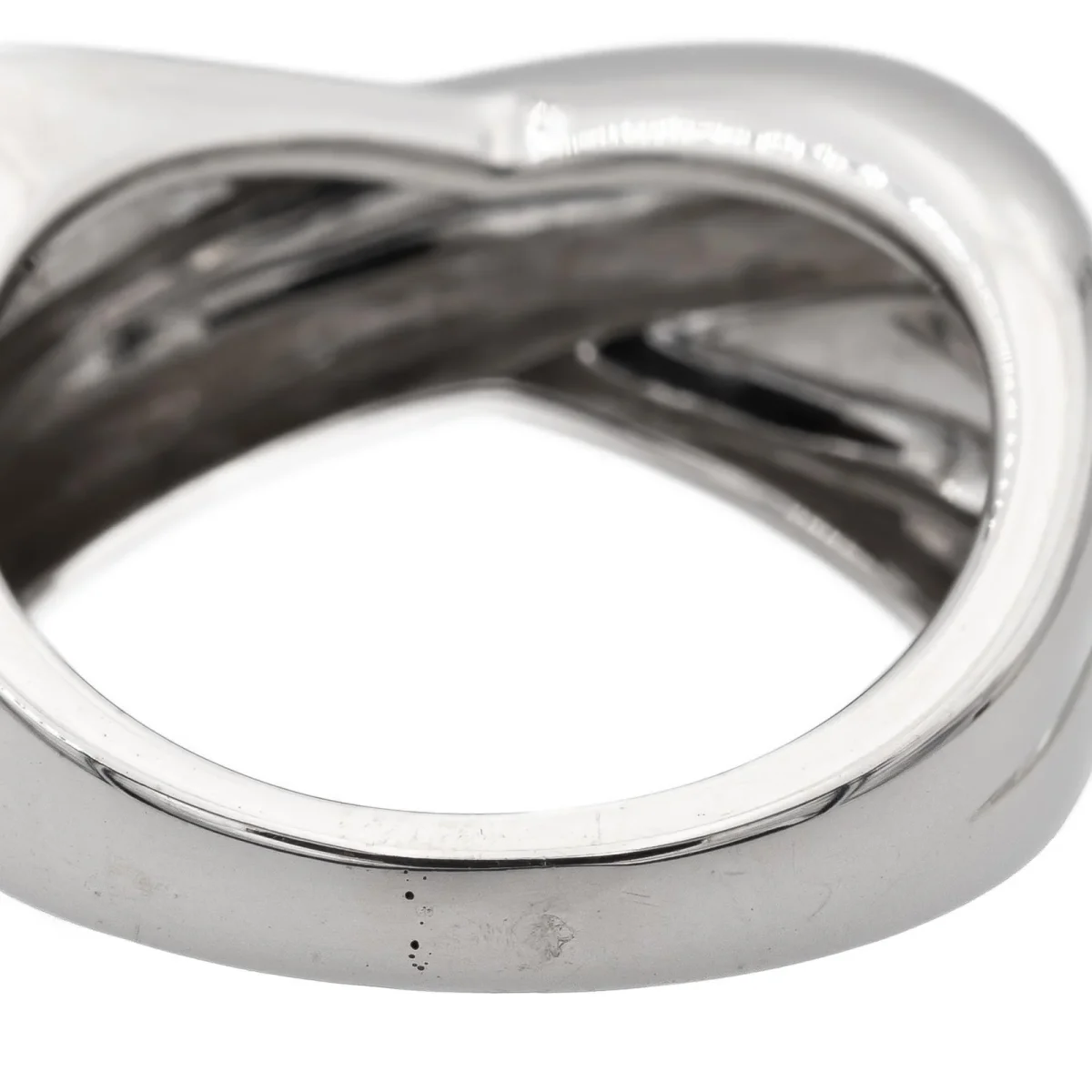 Bague signée de la maison Mauboussin, collection « en corps et encore », en or blanc 750 millièmes (18 carats), tour de doigt: 48, largeur sur le dessus: 0,55 cm, largeur sur le coté: 0,85 cm, poids total: 7,13 g, poinçonné et numérotée: BD4957, prix neuf: 1900€