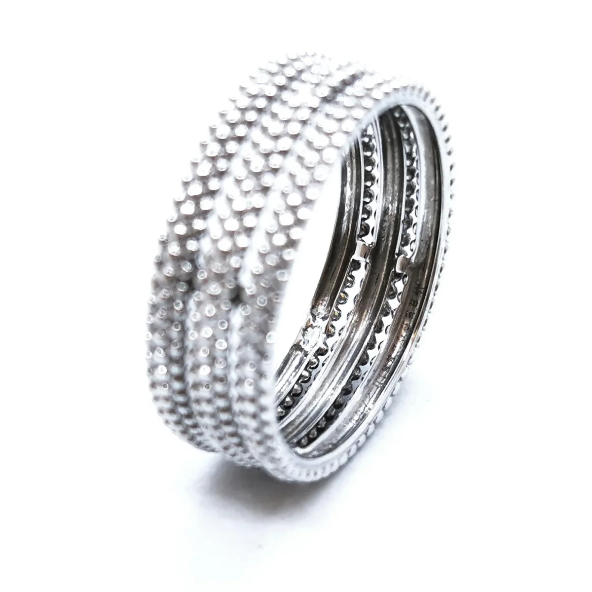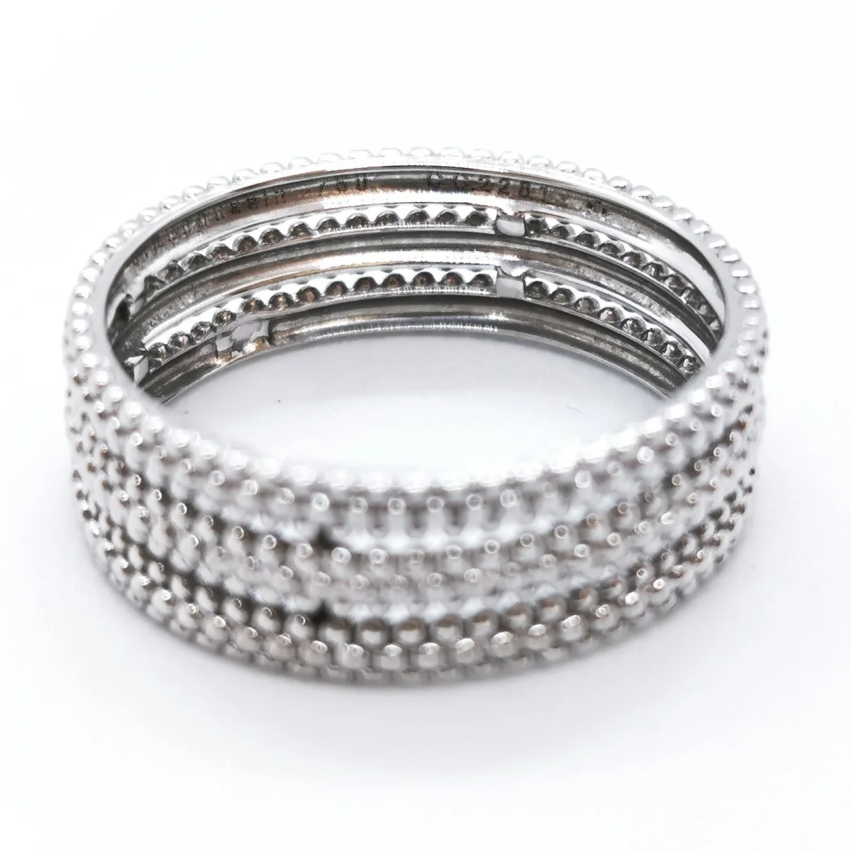 Bague signée de la Maison Mauboussin en or blanc 750 millièmes (18 carats), Collection le Premier Jour, Tour de doigt: 61, Largeur : 0,73 cm, numéroté CC2281, Poids total: 4,77 g, Poinçon tête d’aigle, Prix neuf: 1040 €, Excellent état