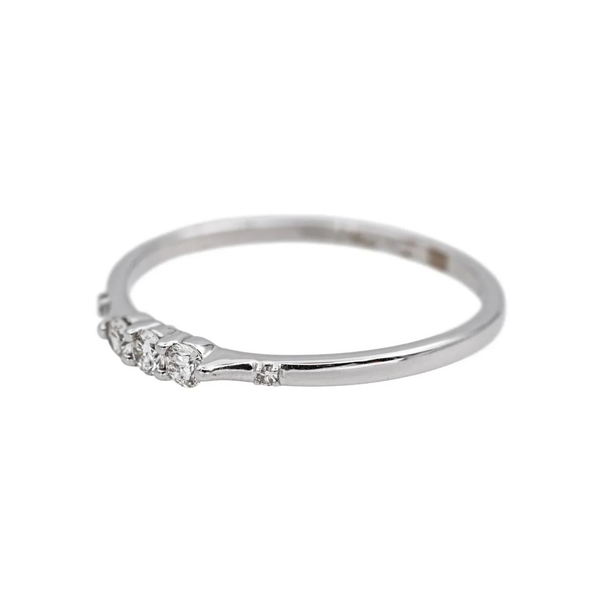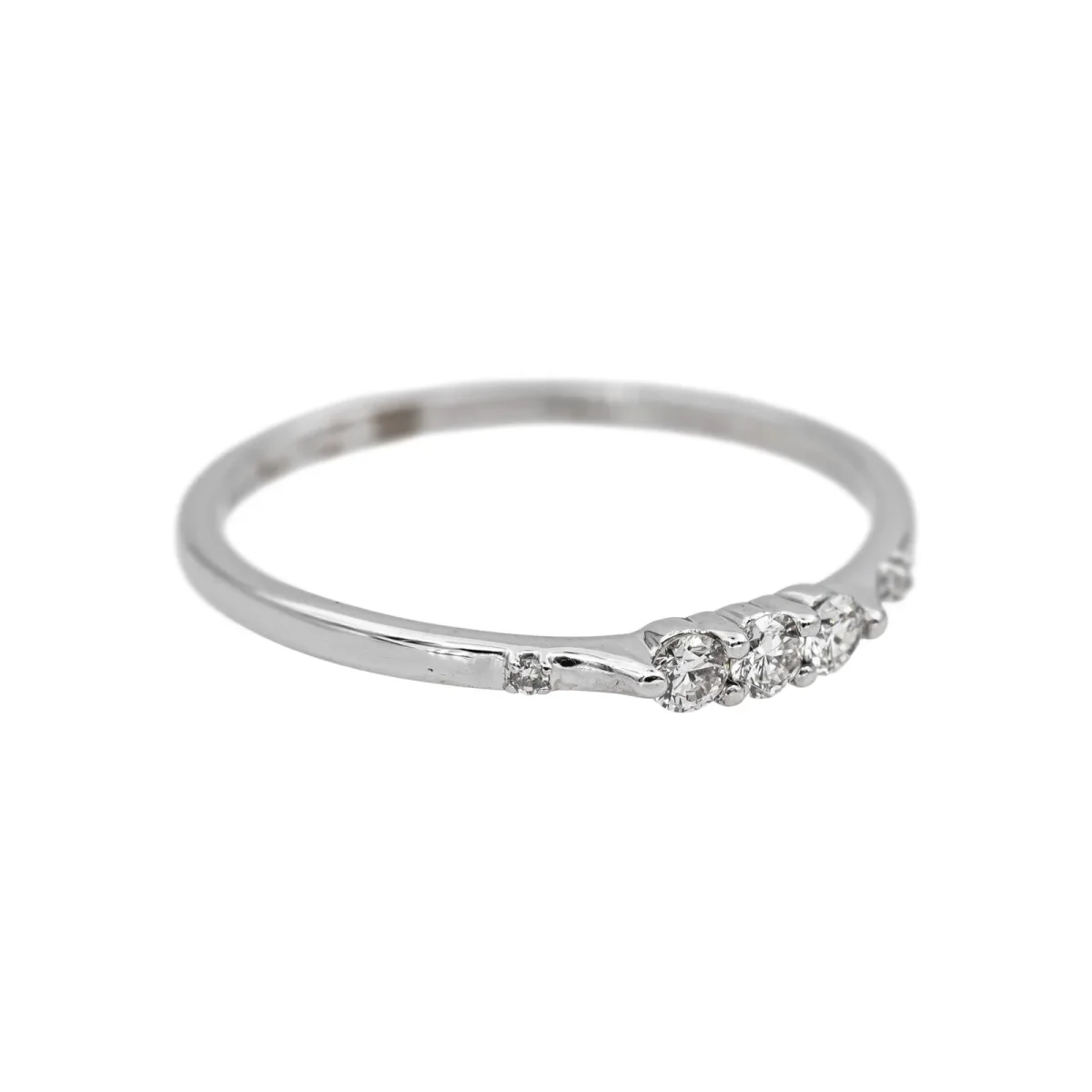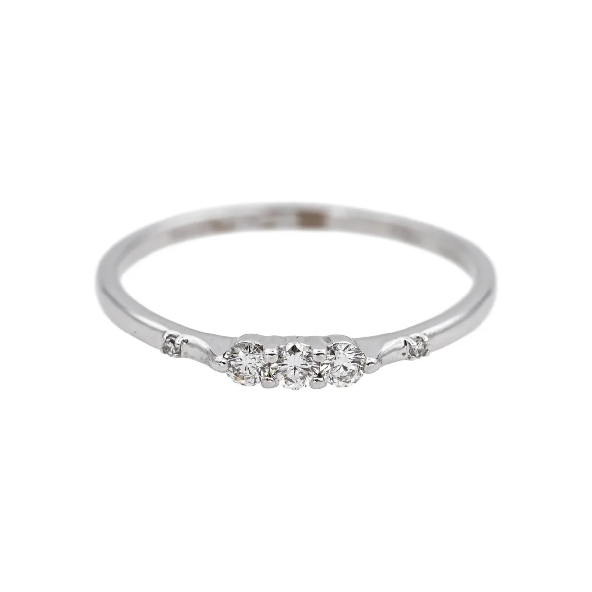 Bague signée de la Maison Mauboussin en or blanc 750 millièmes (18 carats) testé, modèle Trois grains d’amour, sertie de 3 diamants, taille brillant, environ I-SI, d’un poids total d’environ 0.11 ct, (chaque diamant d’un poids d’environ 0.03 ct), largeur sur le dessus : 0.21 cm, tour de doigt : 53, poids total : 1.30 g, numérotée : EI0084, vendue avec écrin d’origine, excellent état