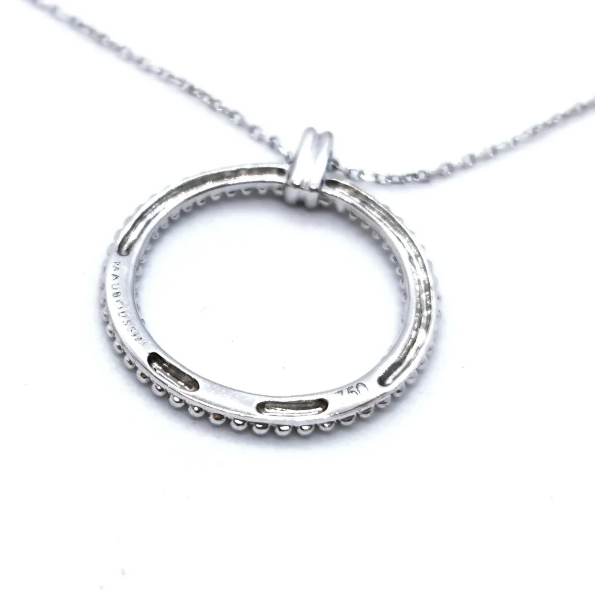 Collier et pendentif signé de la Maison Mauboussin en or blanc 750 millièmes (18 carats) testé, collection le Premier du jour, Longueur chaîne: cm, Dimensions du pendentif: 2,3 x 2,1 cm, Poids total: 3,56 g, Numéroté: BE0168, Excellent état