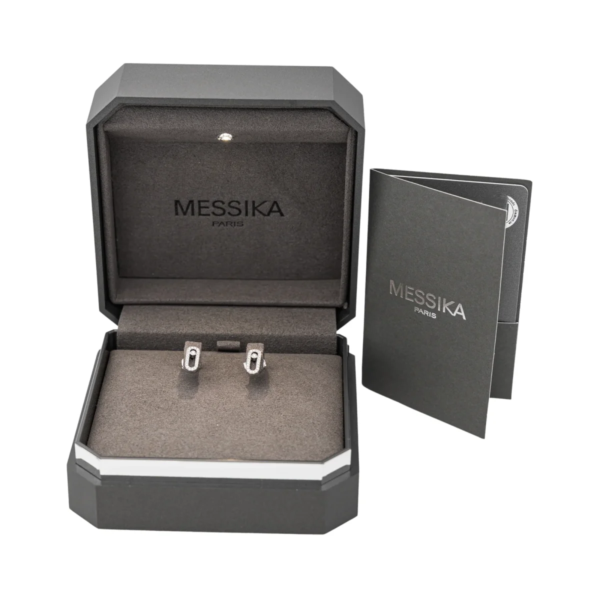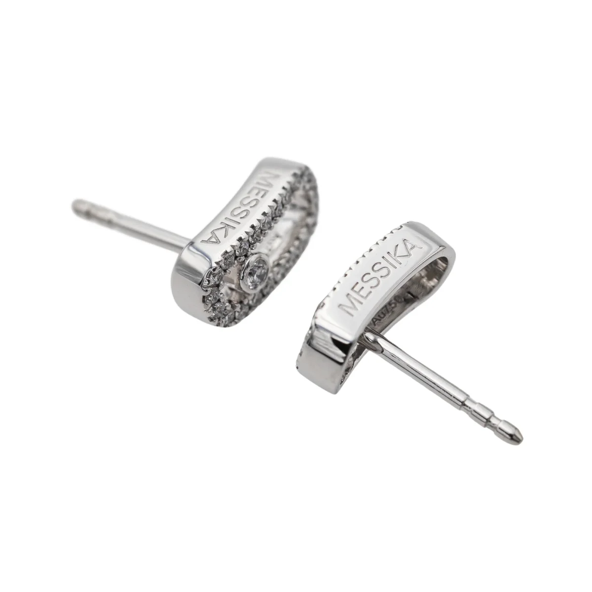 Boucles d’oreilles signées de la Maison Messika, collection Move Uno, en or blanc 750 millièmes (18 carats) testé, sertis de diamants taille brillant environ G/VS1, pour un total d’environ 0,18 ct, dimensions: 1 cm x 0,5 cm, numérotées: I 28321, poids total: 2,67 g, excellent état