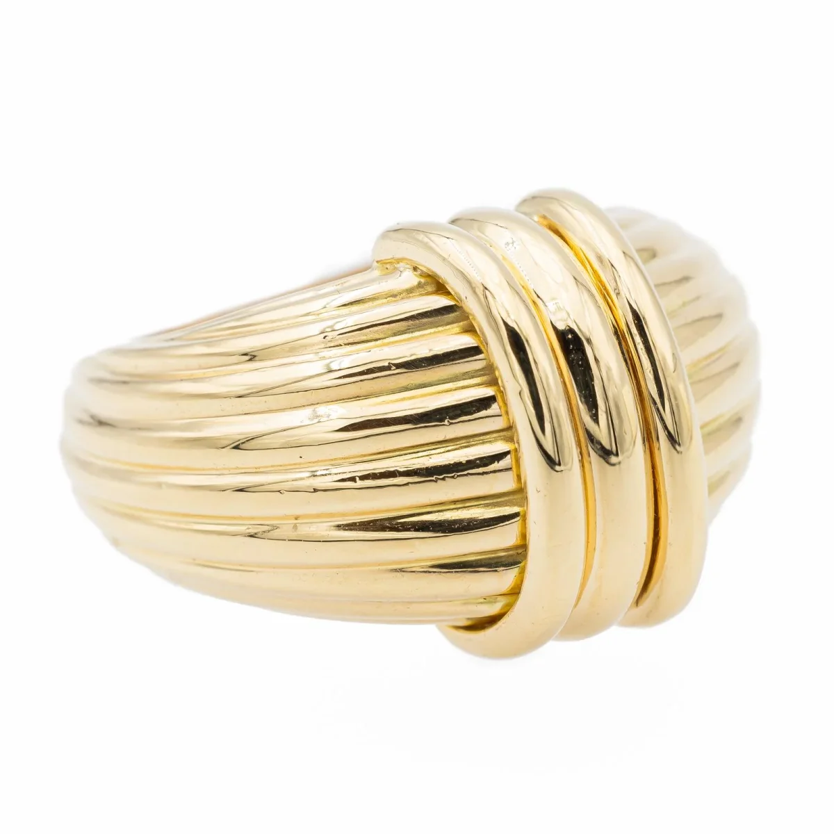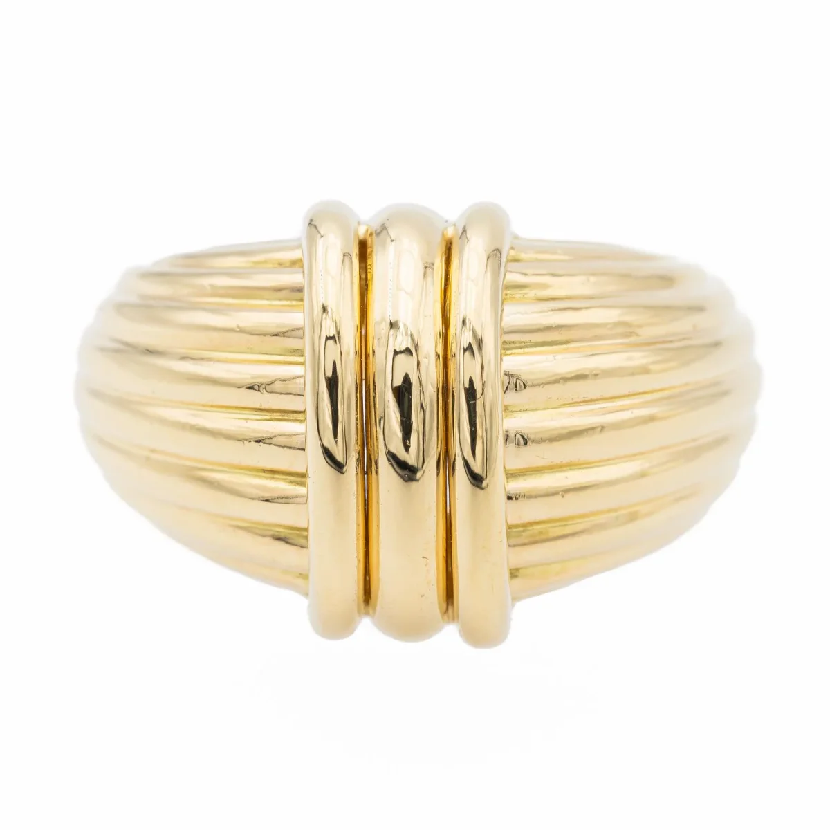 Bague signée de la Maison OJ Perrin en or jaune 750 millièmes (18 carats), largeur sur le dessus: 1,41 cm, tour de doigt: 53,5, poids total: 11,28 g, poinçon hibou, excellent état