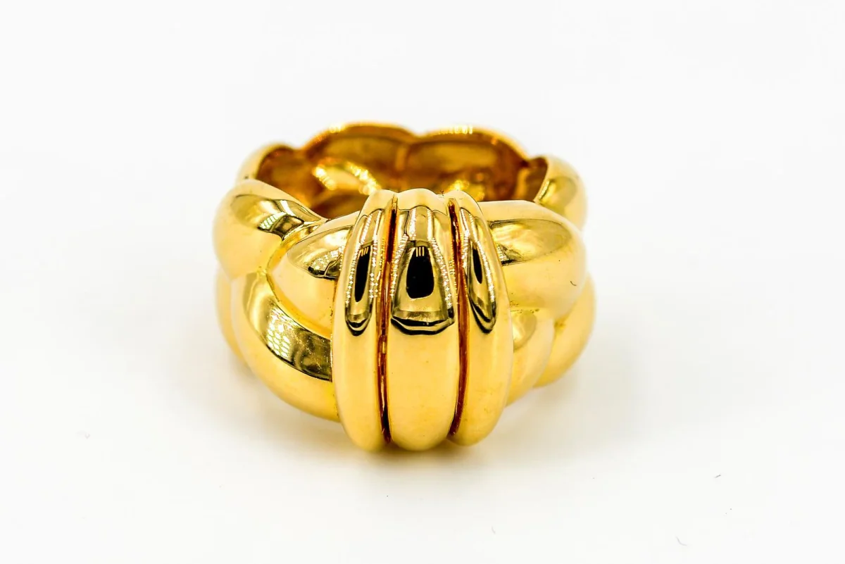 Bague signée de la Maison O.J.Perrin Collection tressée, en Or Jaune 750 millièmes (18 carats) , taille de doigt: 50 Largeur 1,6 cm, Poids total: 12,40 g, Poinçonné, Excellent état