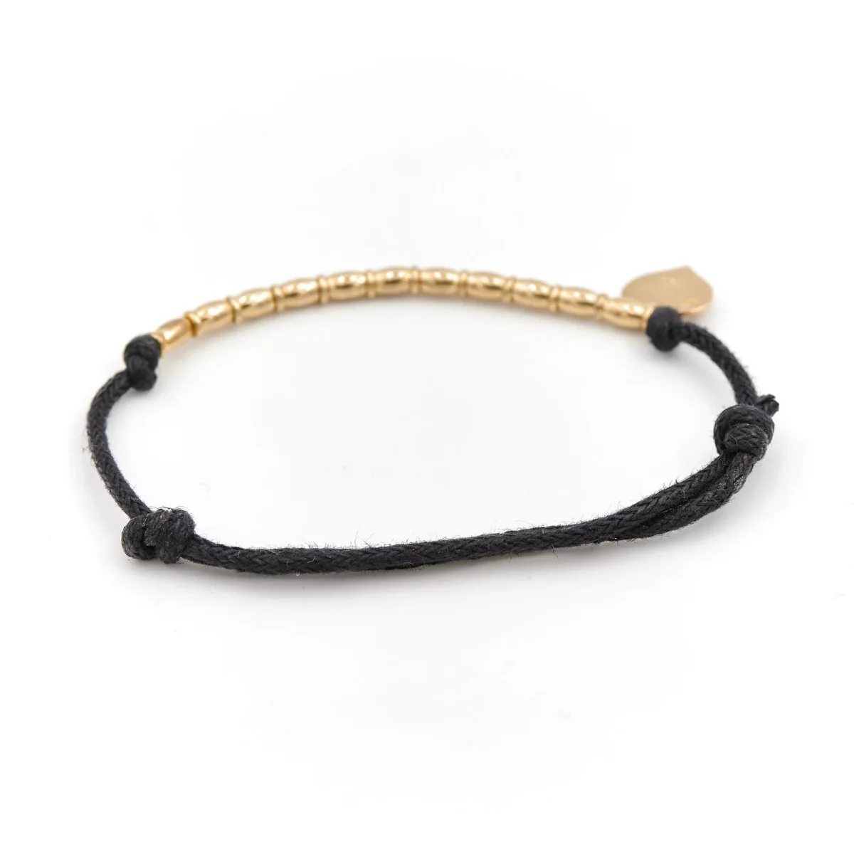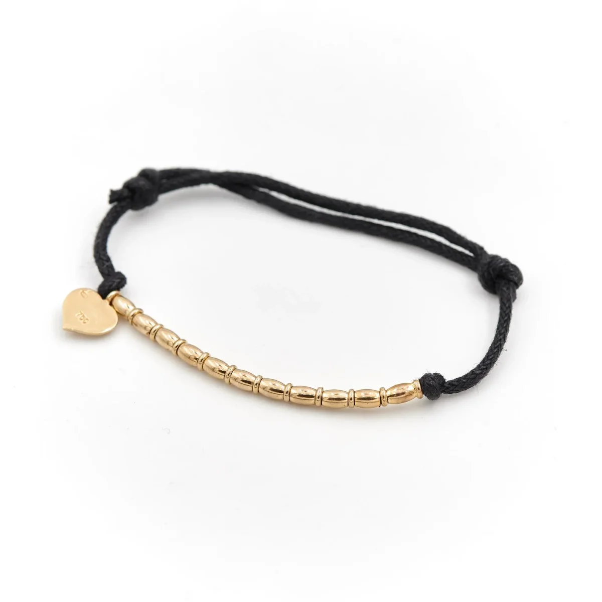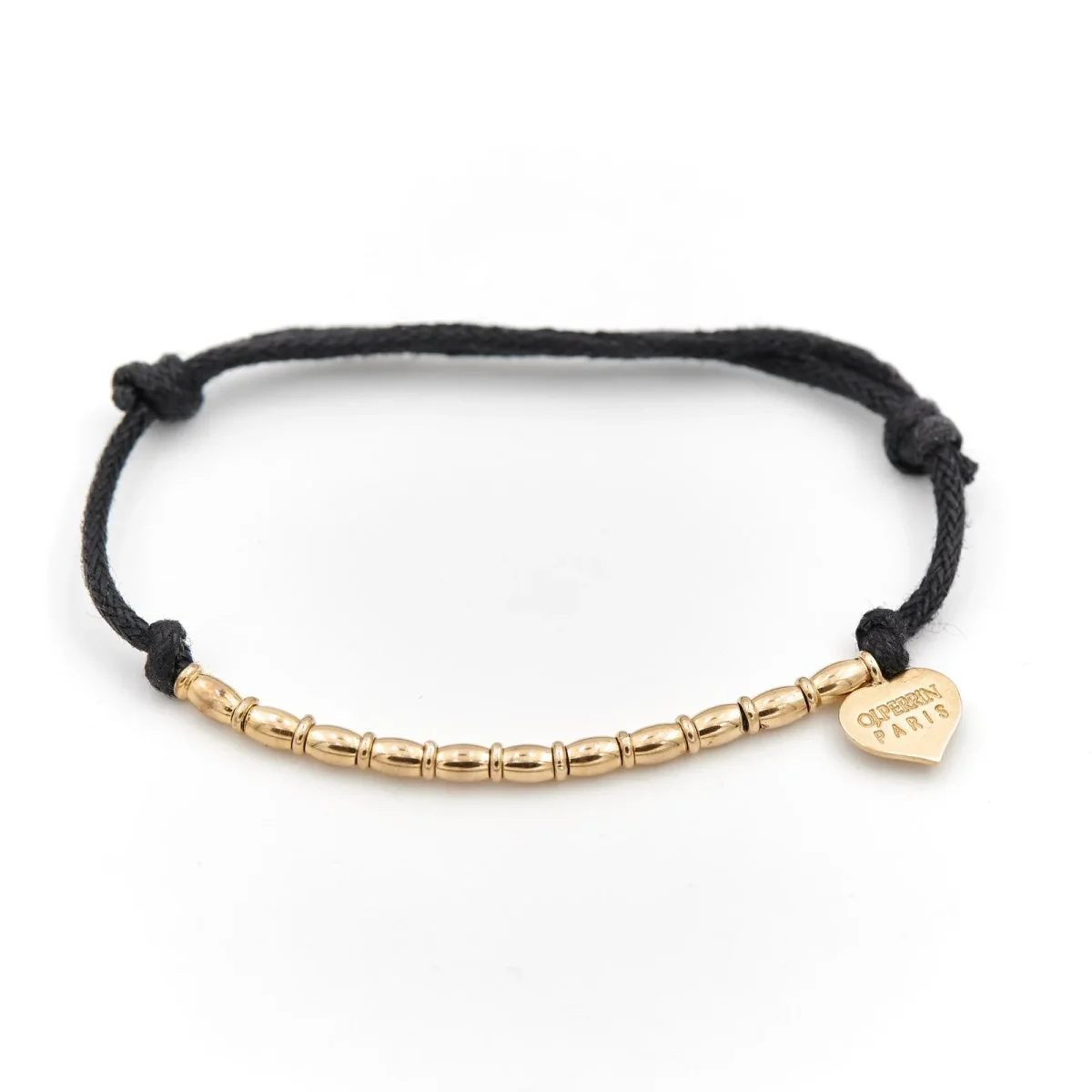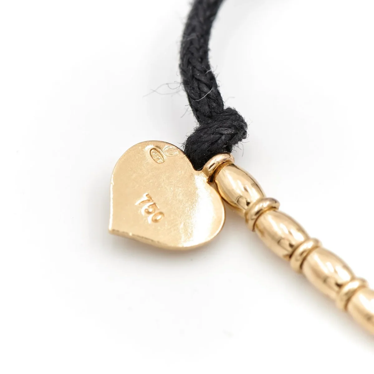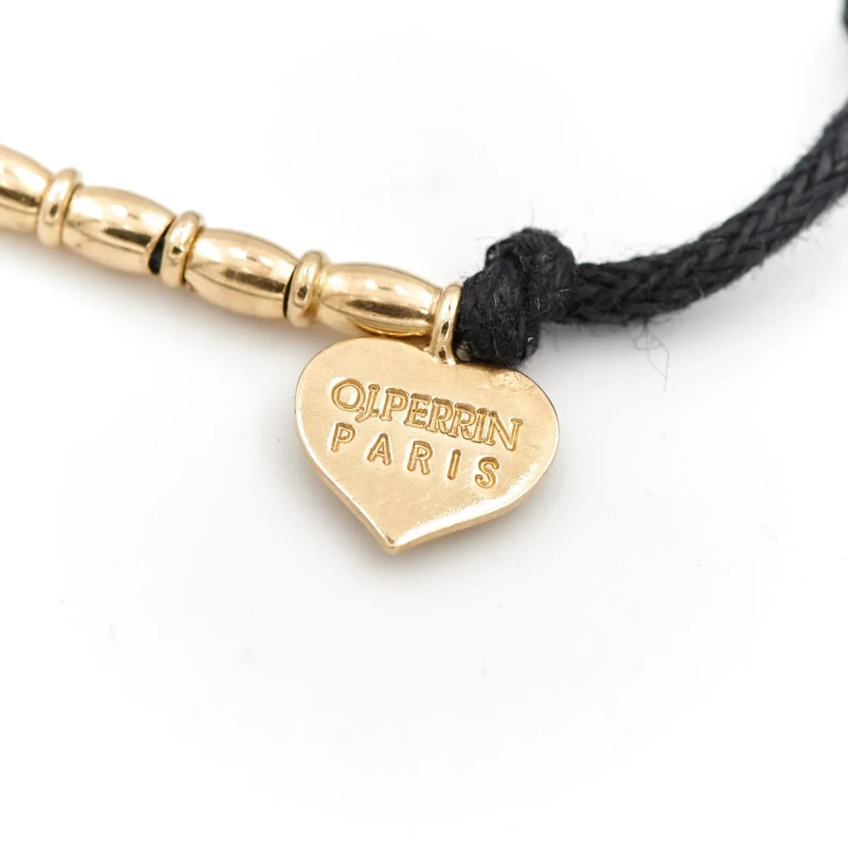 Bracelet signé O.J. Perrin en or jaune 750 millièmes (18 carats), composé d’un cordon ajustable , 20 perles d’or et d’un pendant en or en forme de cœur, Tour de poignet: 20 cm et ajustable, Dimensions : 5,65 x 1,20 cm, Poids total: 3,42 g, Poinçon hibou, Excellent état