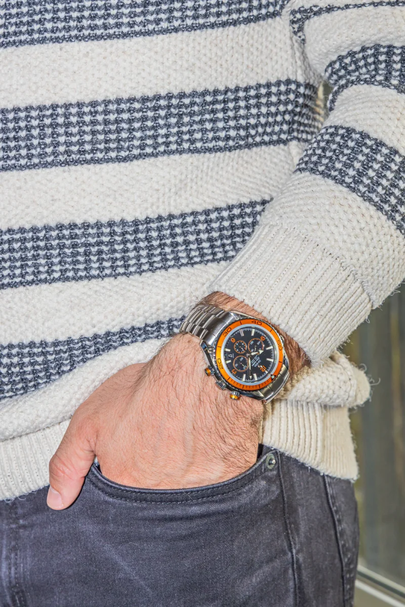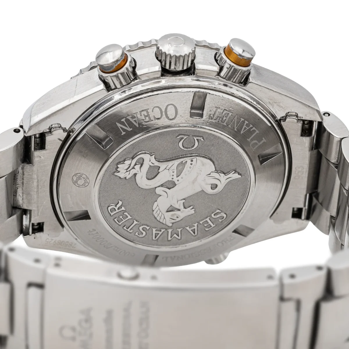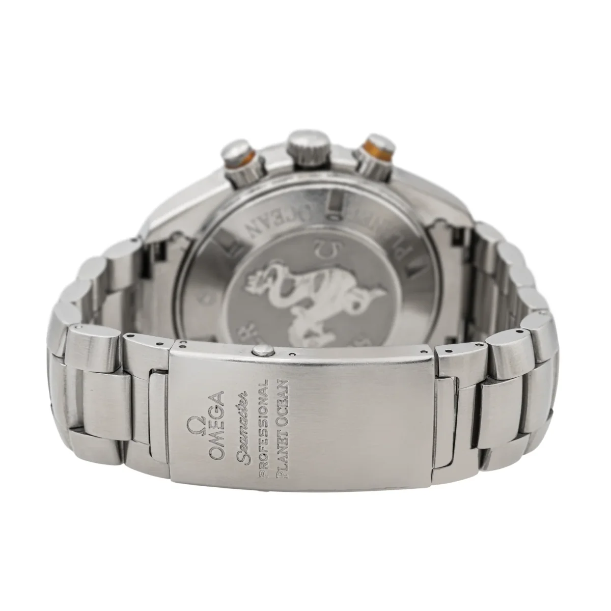Montre Omega modèle Seamaster Planet Ocean acier, n°série 78320432 , cadran noir à index, mouvement mécanique à remontage automatique, boîtier 45,50 mm, verre saphir, bracelet acier boucle déployante avec rallonge plongeur (taille poignet 17 cm, largeur bracelet 21 mm), poids total : 228,46 g, full set (boite et papier d’origine), livrée avec un second bracelet […]