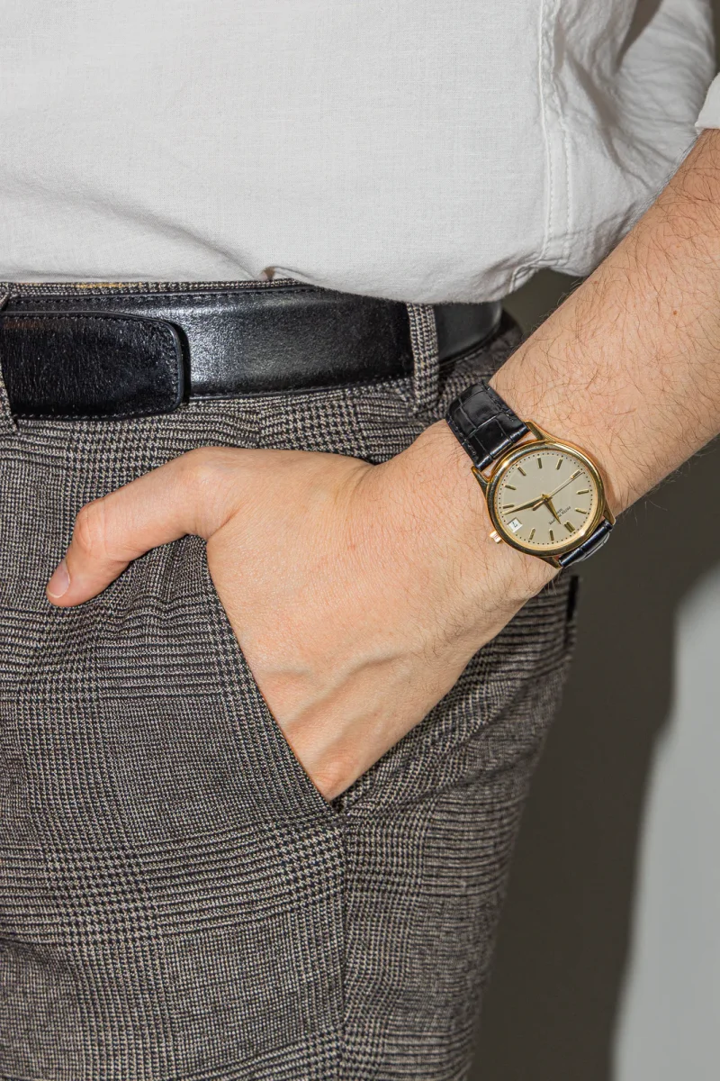 Montre signée Patek Philippe, modèle Calatrava, en or jaune 750 millièmes (18 carats), calibre 3001989 315/190, cadran blanc à index bâton, mouvement mécanique à remontage automatique, boitier 34 mm, verre saphir, bracelet cuir à boucle ardillon (Taille poignet 21 cm ajustable, Largeur bracelet 1,6 cm), poids total 54,51 g, révision 05/2024, année 70/80, poinçon Saint […]