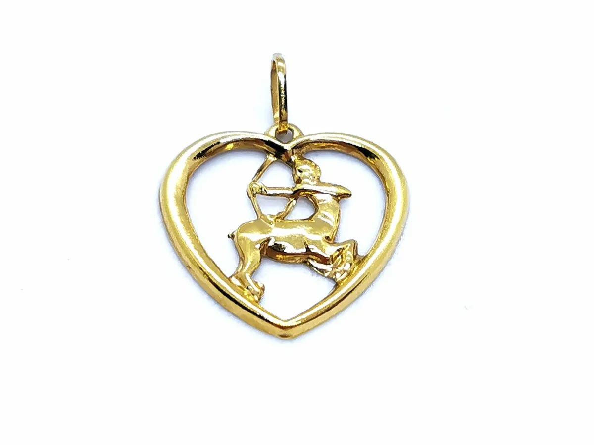 Pendentif signe astrologique, en or jaune 750 millièmes (18 carats) testé, forme coeur, représentant le signe du sagittaire, dimensions: 1,50 cm x 1,48 cm, poids total: 0,41 g, état neuf