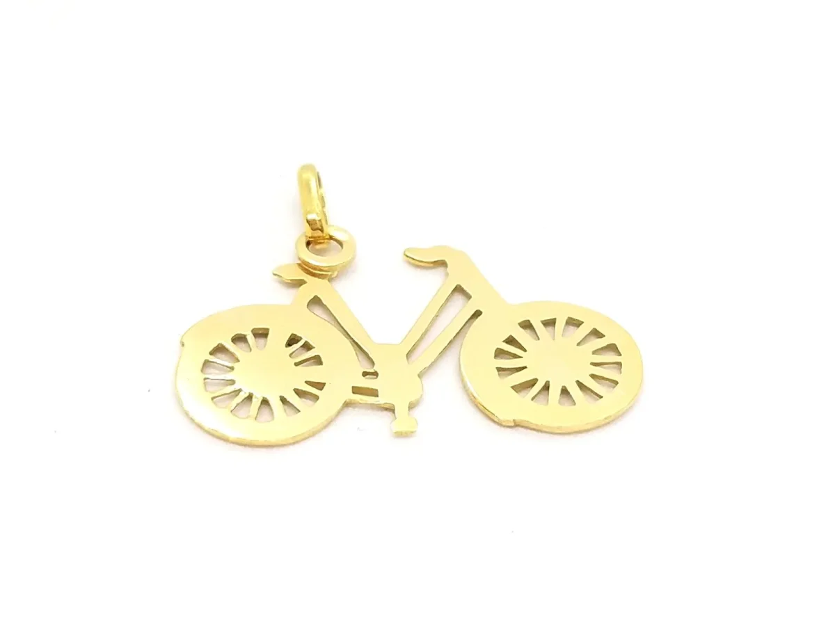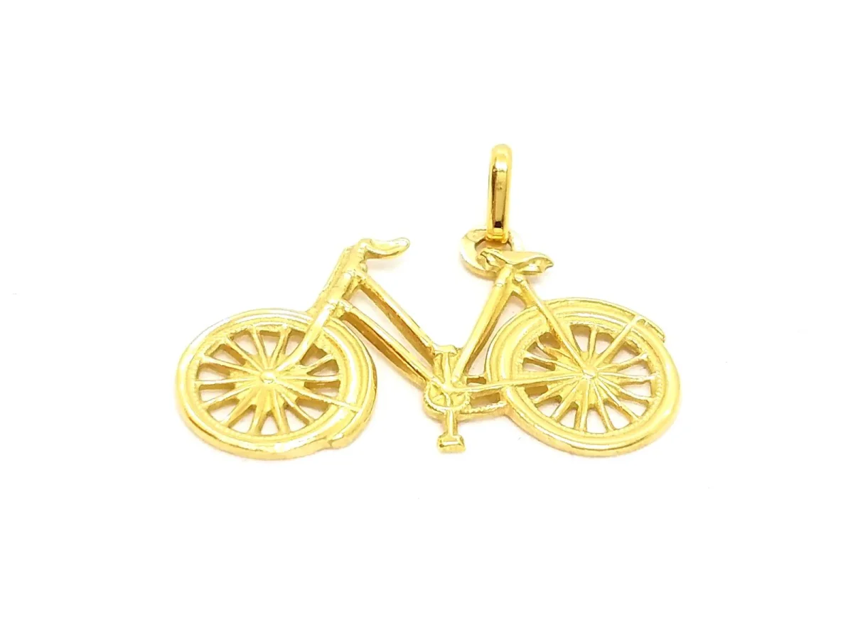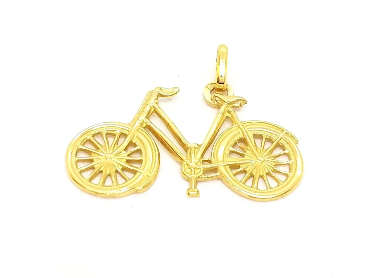 Pendentif bicyclette en or jaune 750 millièmes (18 carats), dimensions du pendentif: 2,80 cm x 2,63 cm (bélière incluse), Poids total: 1,89 g, poinçon tête d’aigle, état neuf