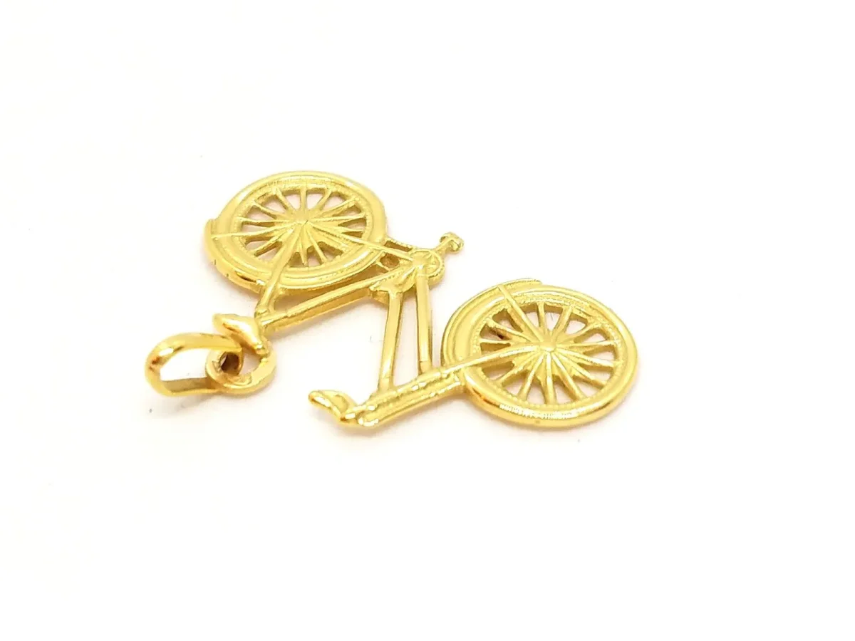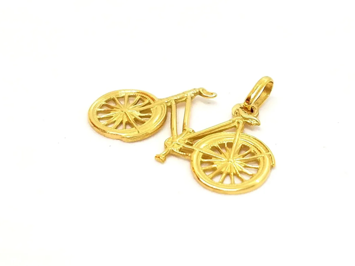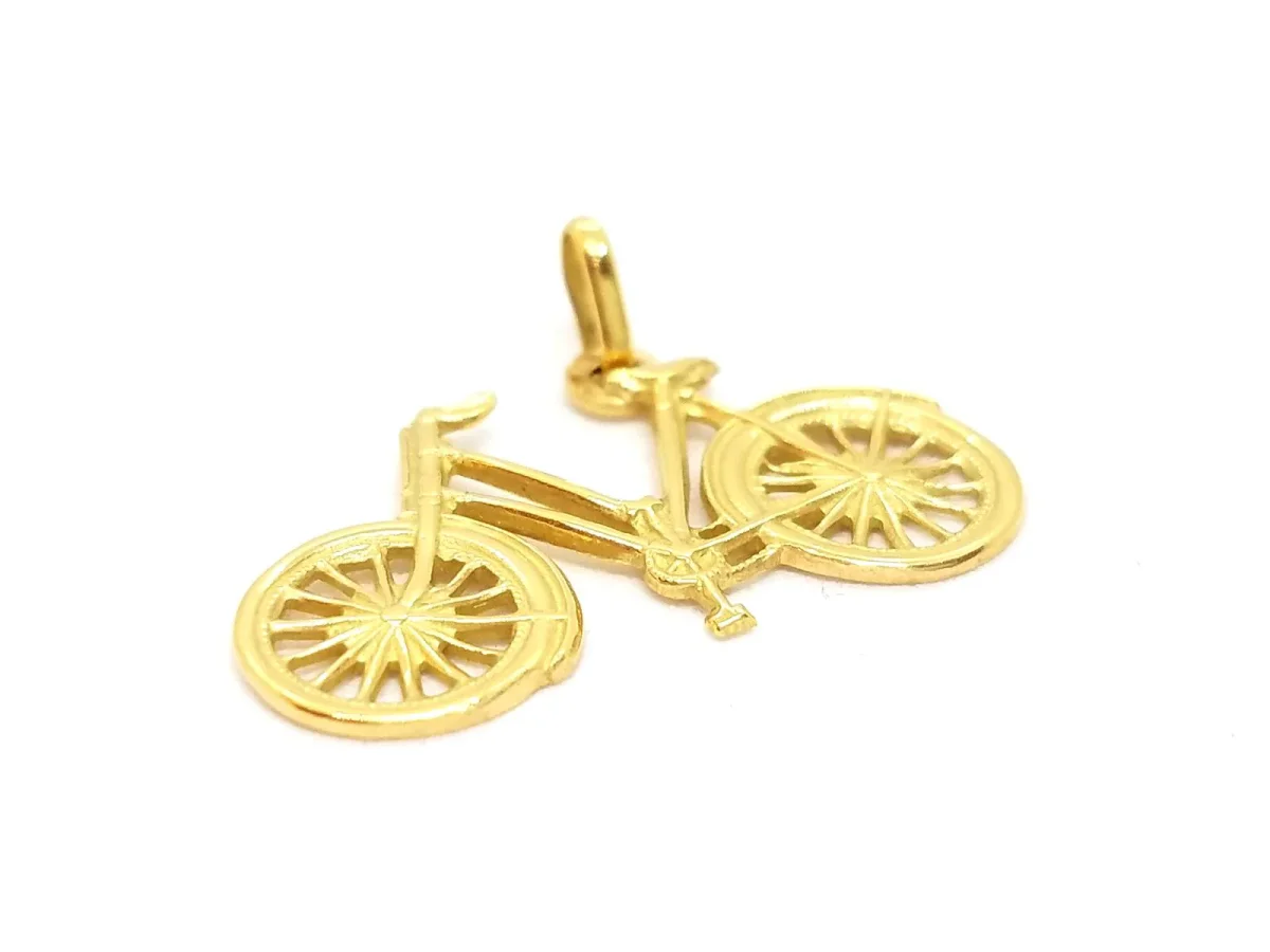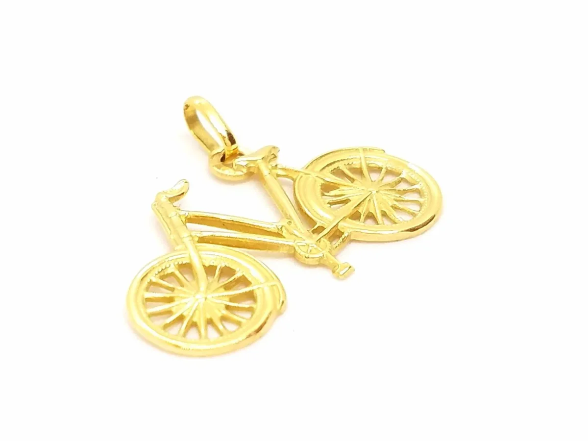 Pendentif bicyclette en or jaune 750 millièmes (18 carats), dimensions du pendentif: 2,80 cm x 2,63 cm (bélière incluse), Poids total: 1,89 g, poinçon tête d’aigle, état neuf