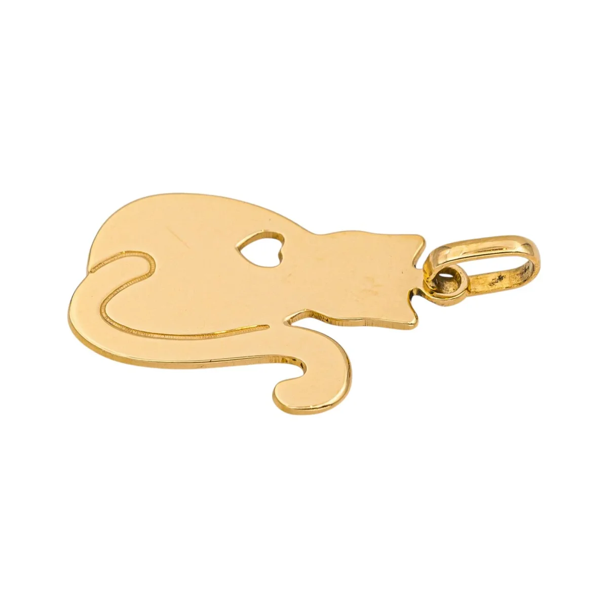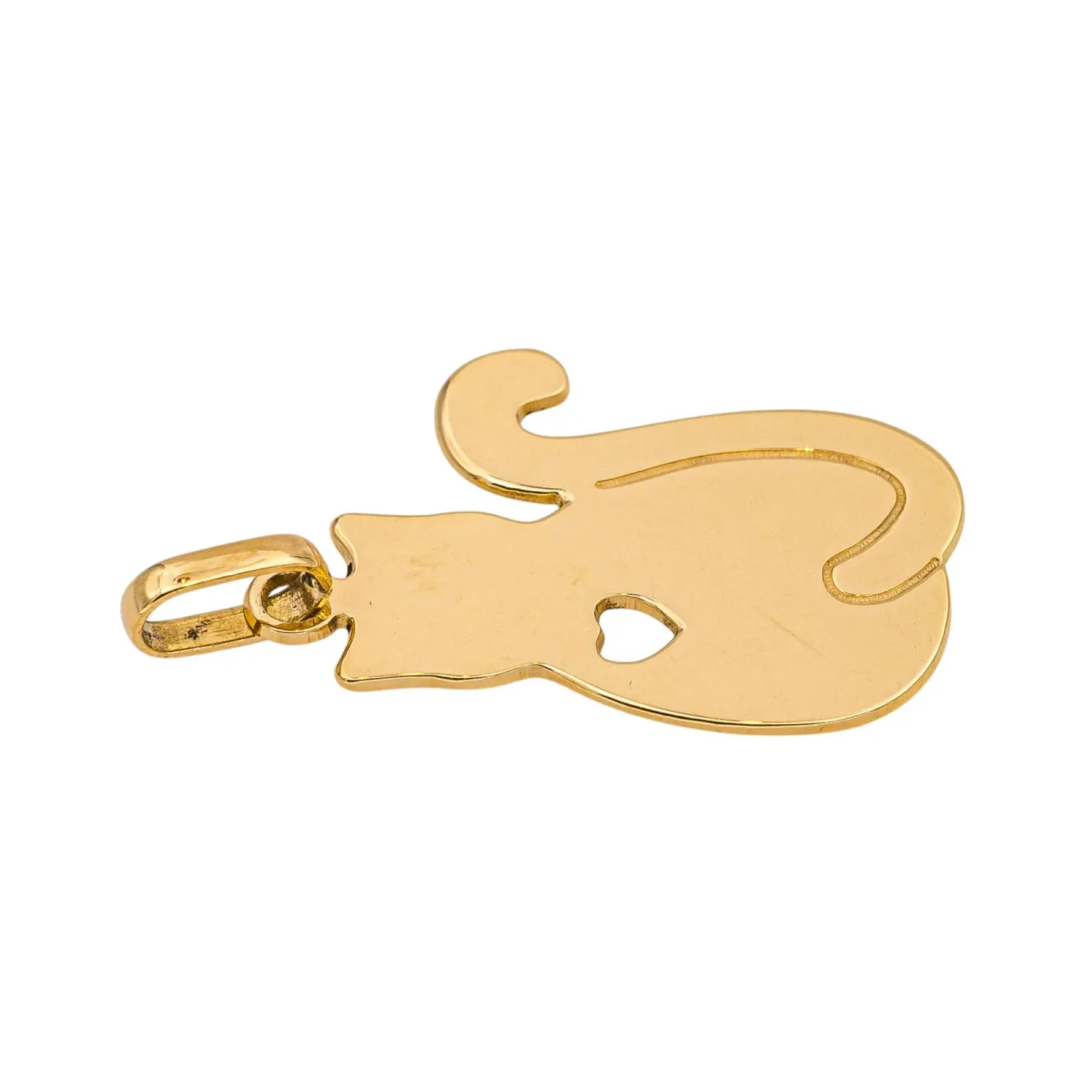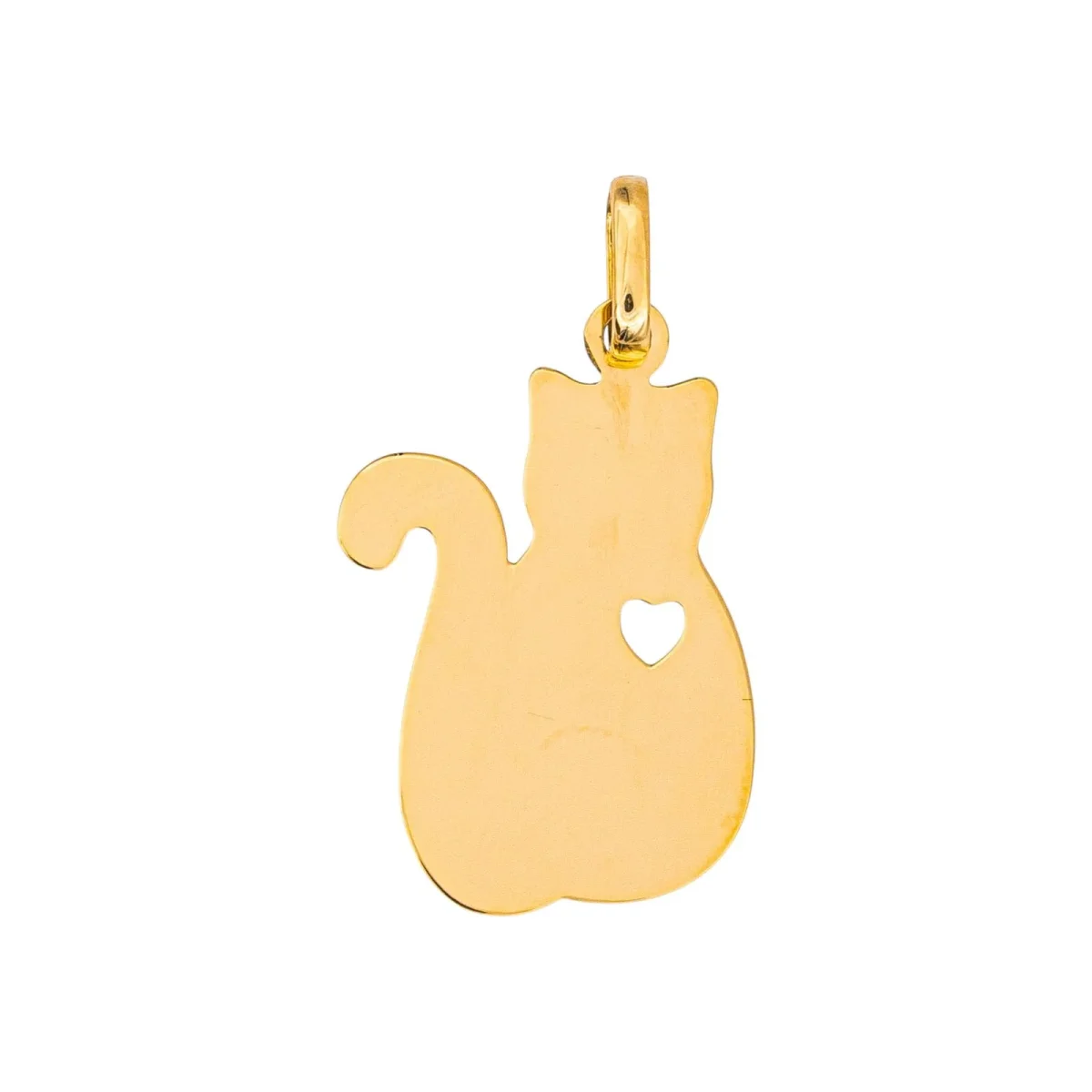 Pendentif en or jaune 750 millièmes (18 carats) testé, figurant un chat, dimensions avec la bélière : 2,47 cm x 1,40 cm, poids total : 1,36 g, poinçon tête d’aigle, excellent état
