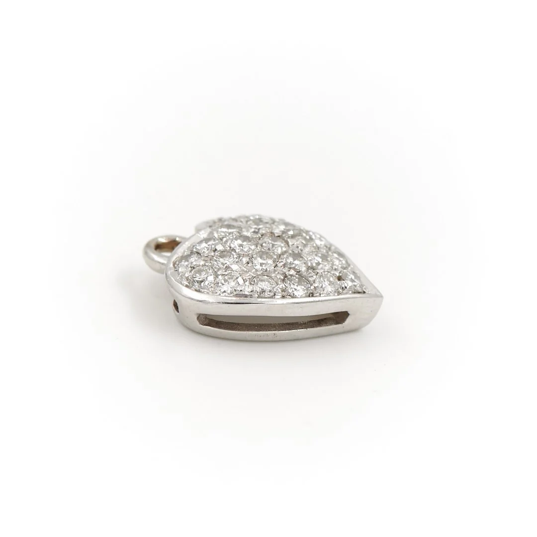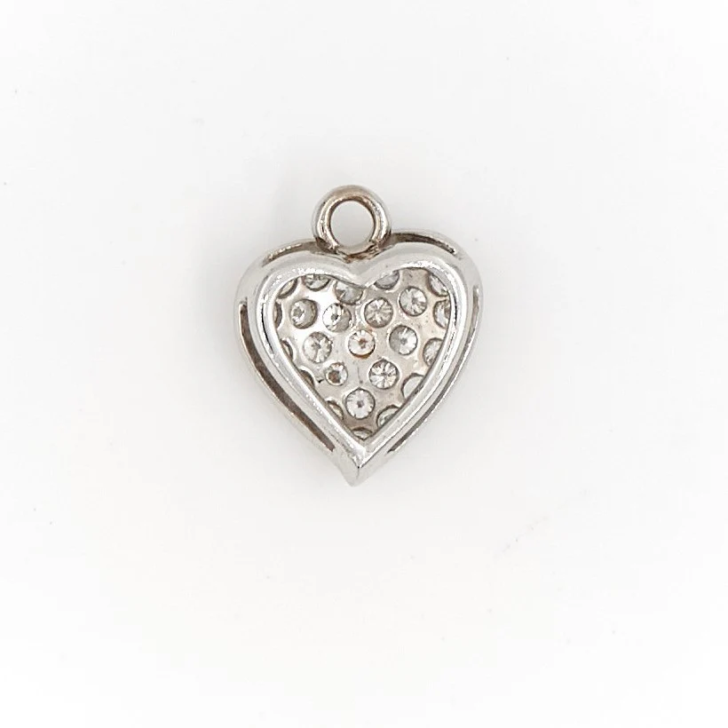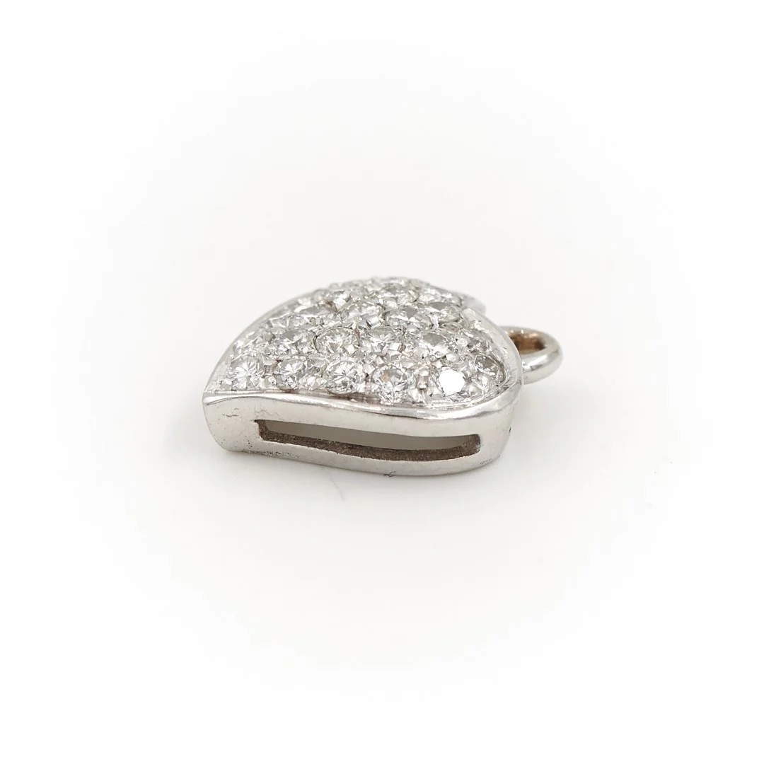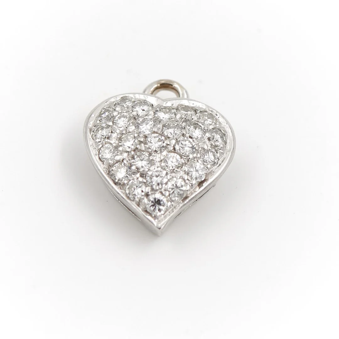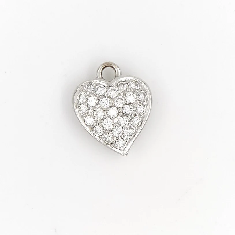 Pendentif cœur en or blanc 750 millièmes (18 carats) testé, pavé de 25 diamants taille brillant, d’ environ 0,015 ct chacun, environ G-VS, poids total diamants: environ 0,375 ct, dimensions: 1,25 cm x 1,04 cm, poids total: 1,04 g, excellent état