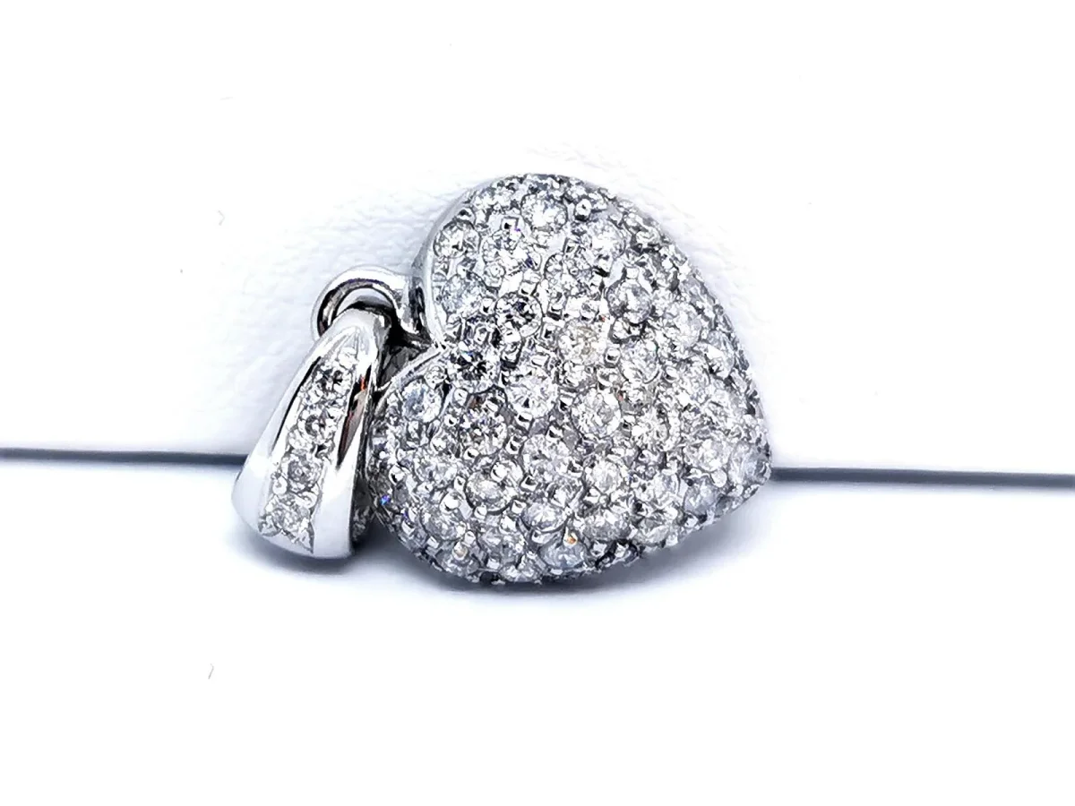Pendentif coeur, en or blanc 750 millièmes (18 carats), pavé de diamants taille brillant H-SI, pour un total d’environ 0,80 ct, dimensions (bélière incluse): 2,55 cm x 1,52 cm, poids total: 3,50 g, poinçon tête d’aigle, excellent état