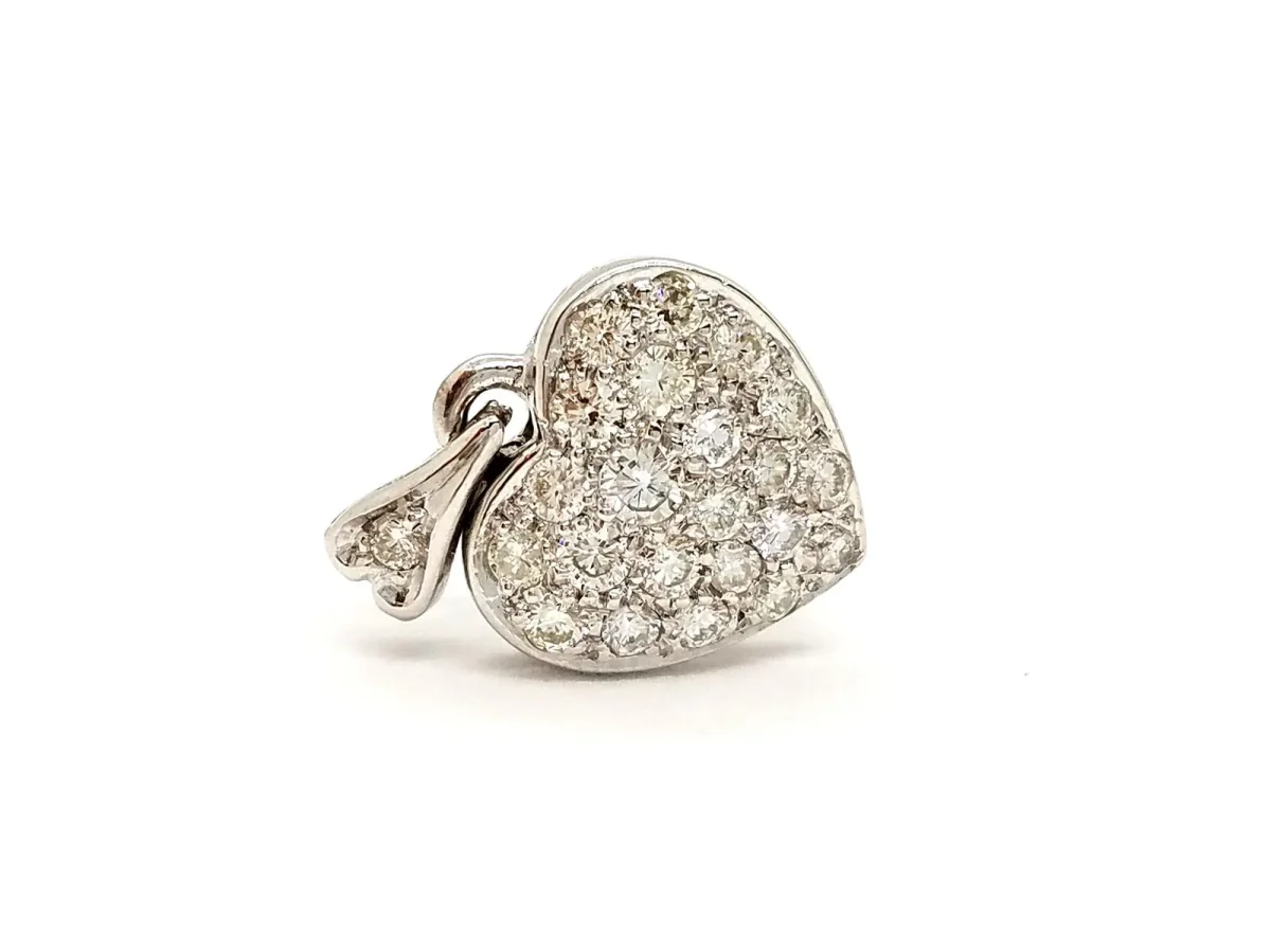 Pendentif coeur, en or blanc 750 millièmes (18 carats) testé, pavé de 23 diamants taille brillant G-H VSI pour environ 0,25 ct au total, dimensions coeur: 1,24 cm x 1,27 cm, hauteur totale (bélière incluse): 1,88 cm, poids total: 2,22 g, excellent état