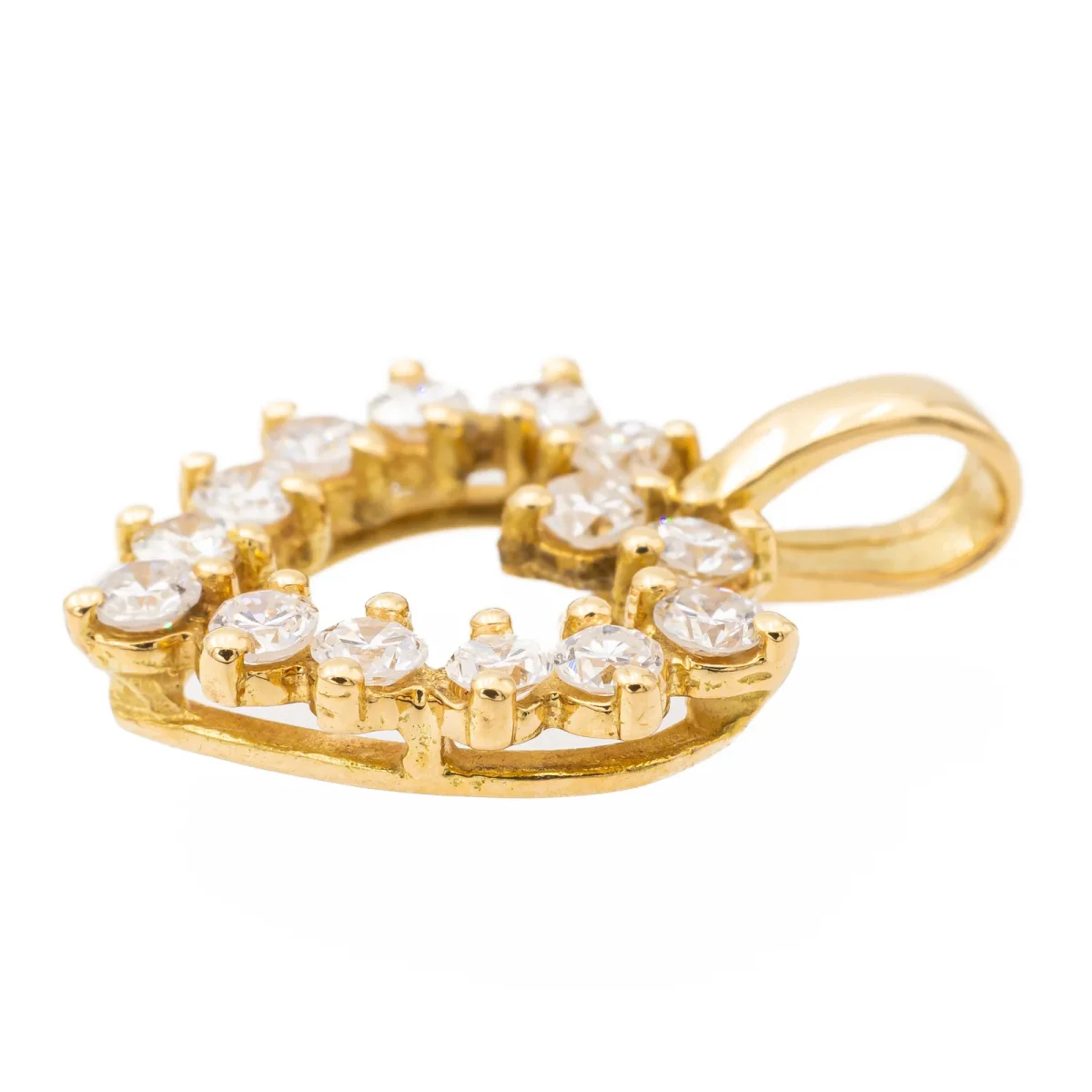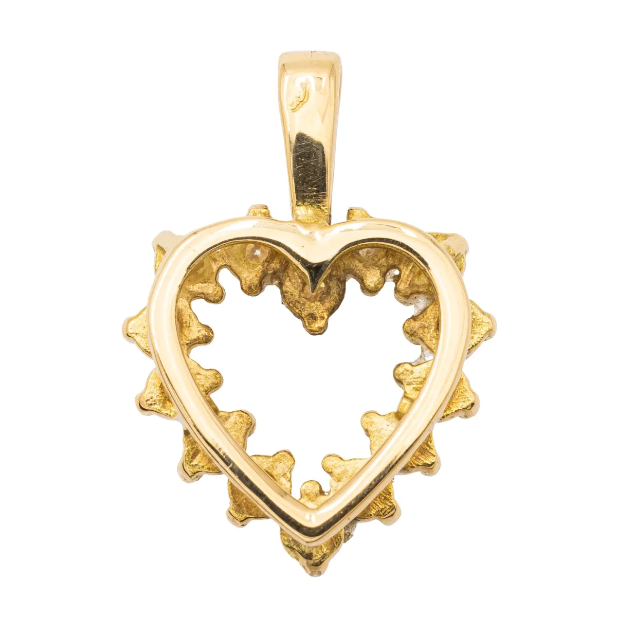 Pendentif coeur, en or jaune 750 millièmes (18 carats), 14 diamants taille brillant, environ I/VS, d’un poids total d’environ 0,42 ct, (chaque diamant d’un poids d’environ 0,03 ct), dimensions avec la bélière: 1,77 cm x 1,26 cm, poids total: 1,38 g, poinçon tête d’aigle, excellent état